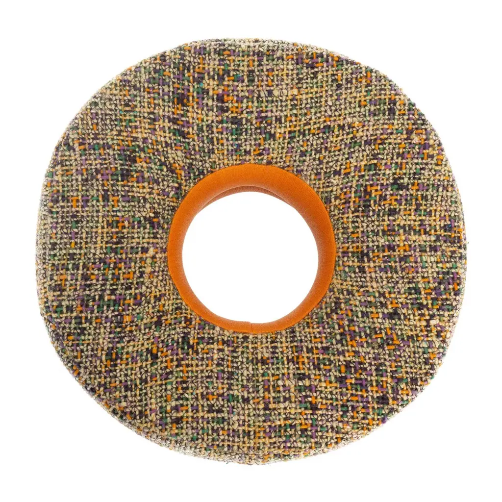 Small Round Stool With Tweed Upholstery & Orange Vinyl Accent