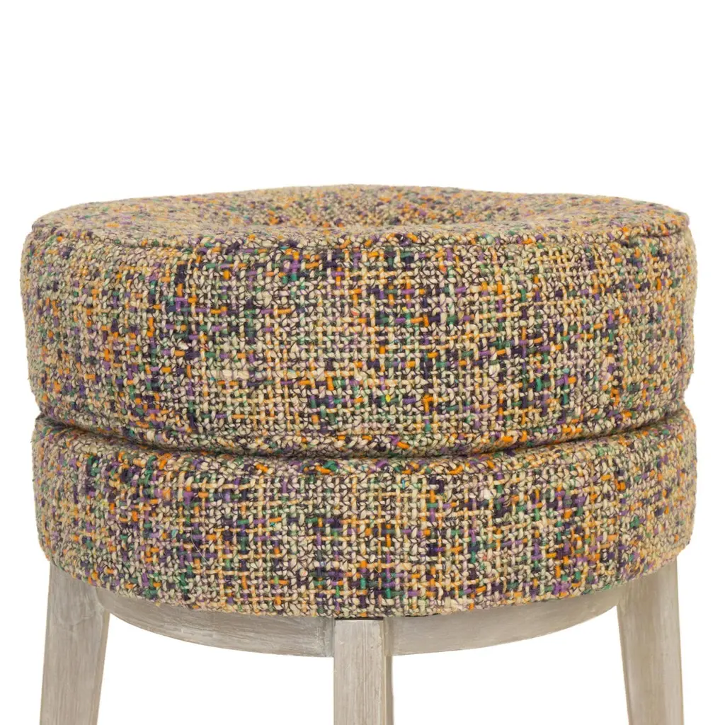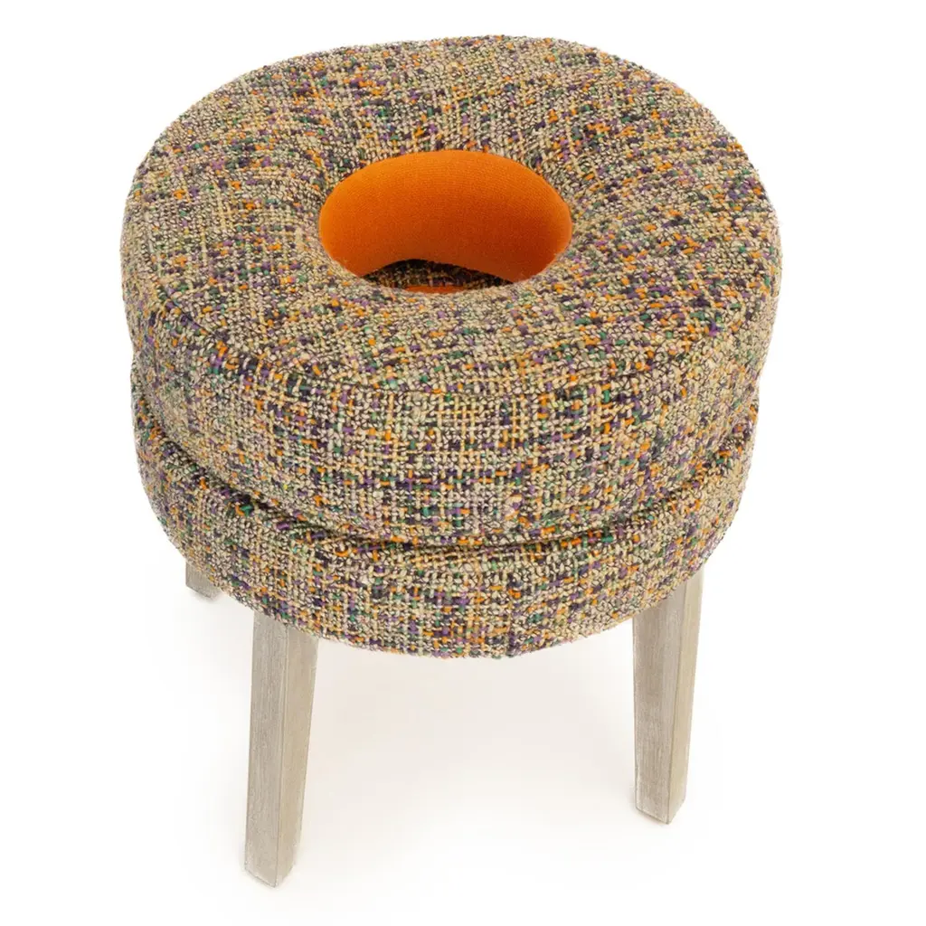 This small round stool is upholstered in a colorful tweed fabric with an orange vinyl interior accent. Made with poplar wood painted with a Swedish finish. Sturdy base with a comfortable foam cushion seat, it is great for all ages. Check for current availability of piece as shown. Size, finish and fabric customizable.Measurements:Outside: 16” W x 16" D x 18” HPrice as shown: $1,500 eachCOM price: $1,360 eachCustomization may change price.How we work:Made to order by Connecticut-based furniture design and manufacturing company The Tailored Home. Submit your customization desires by 1stdibs messenger for a quote. After orders are placed our workshop manager creates a visual work order for your approval for quality assurance.Customization options:Dimensions can be customized.The fabric shown may come in more colors. We also carry thousands of other materials and can send you samples and fabric pricing upon request. We accept your fabric for a COM fee of 5% of the cost of the piece. Welting, piping, tape or trim can be added. Different species available for pieces with exposed wood and can be painted & lacquered in any Benjamin Moore color (for additional charge) or stained in one of our stain options. Custom color matches cost $75 per sample.We accept inspiration photos of pieces you like.