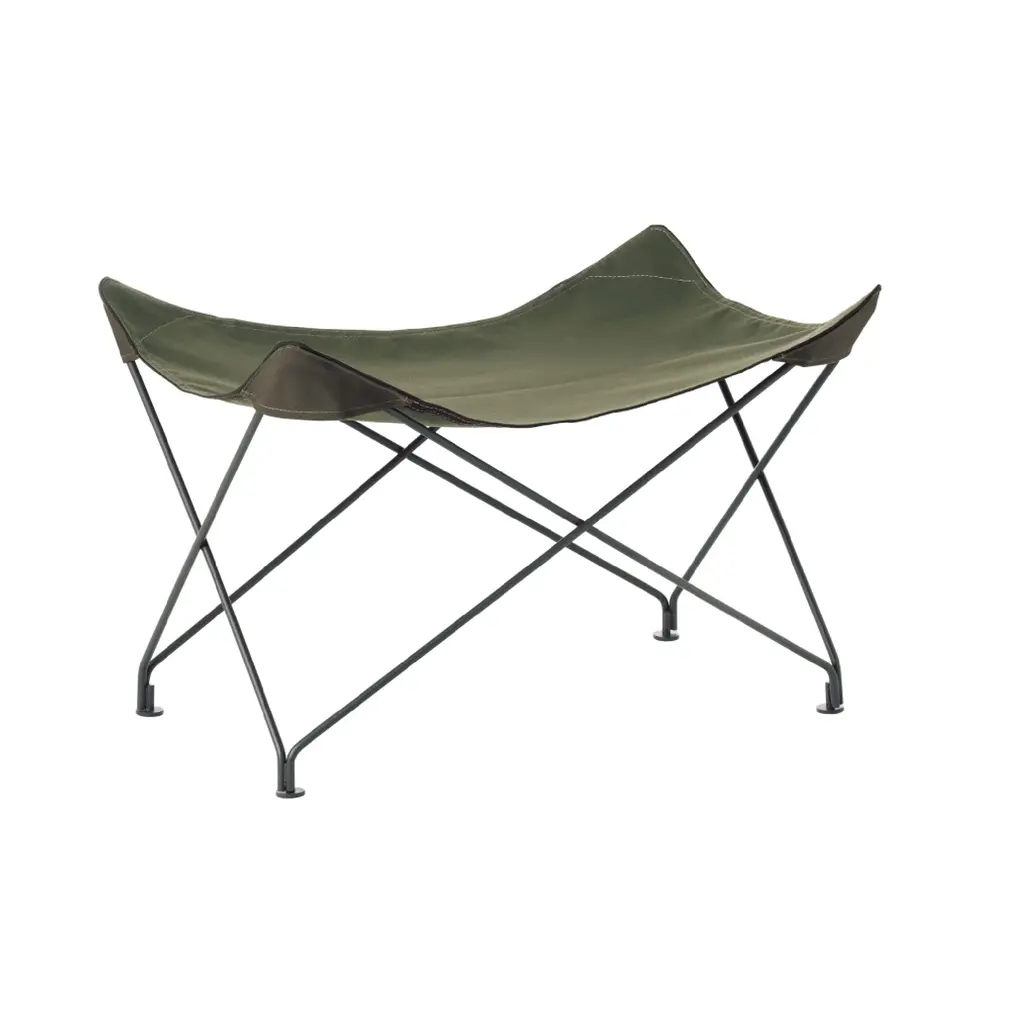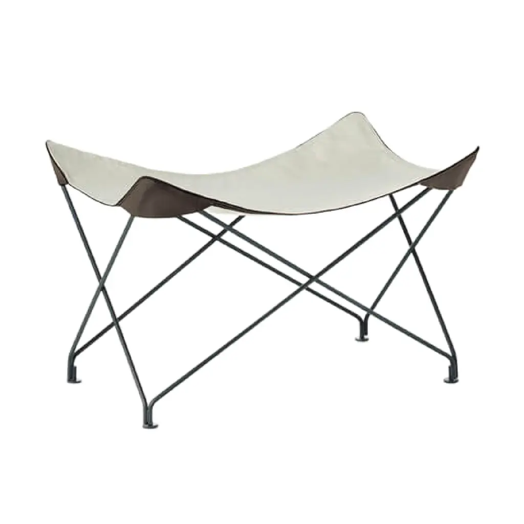 Snooze fully interprets the classic deckchair thanks to its generous and enveloping dimensions and is available in various colourful versions which add a touch of liveliness to every setting. The deckchair comes with a practical support element that can also function as a footrest, available in the same range of colours as the deckchair, to which two new shades have been added. The small, foldable armchair completes this practical and fun three-piece set, with its memorable design, enhanced by energetic colour.