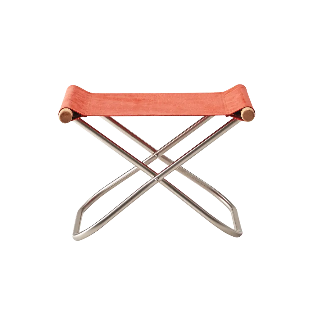 Snooze fully interprets the classic deckchair thanks to its generous and enveloping dimensions and is available in various colourful versions which add a touch of liveliness to every setting. The deckchair comes with a practical support element that can also function as a footrest, available in the same range of colours as the deckchair, to which two new shades have been added. The small, foldable armchair completes this practical and fun three-piece set, with its memorable design, enhanced by energetic colour.