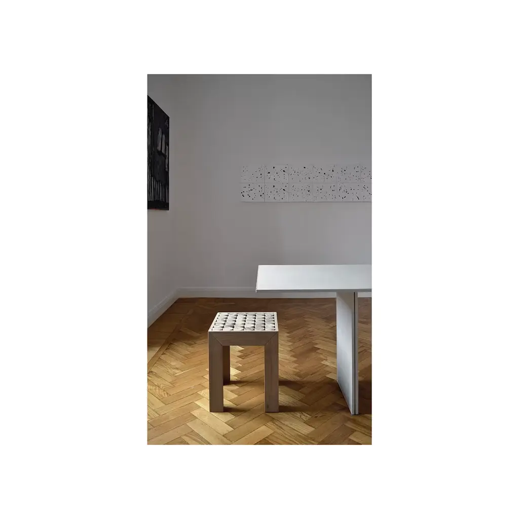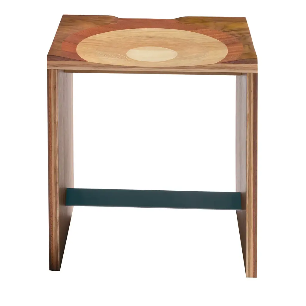 Made entirely in solid wood by expert carpenters, each of the stools of the Sofia collection is a unique item that can vary from the others due to the artisanal methods used to craft it. Its simple structure supports a top featuring a dynamic texture thanks to the wood cylinders that comprise its surface that create striking patterns of light and shadow. This piece is also available with legs in steel (either polished or bronzed).