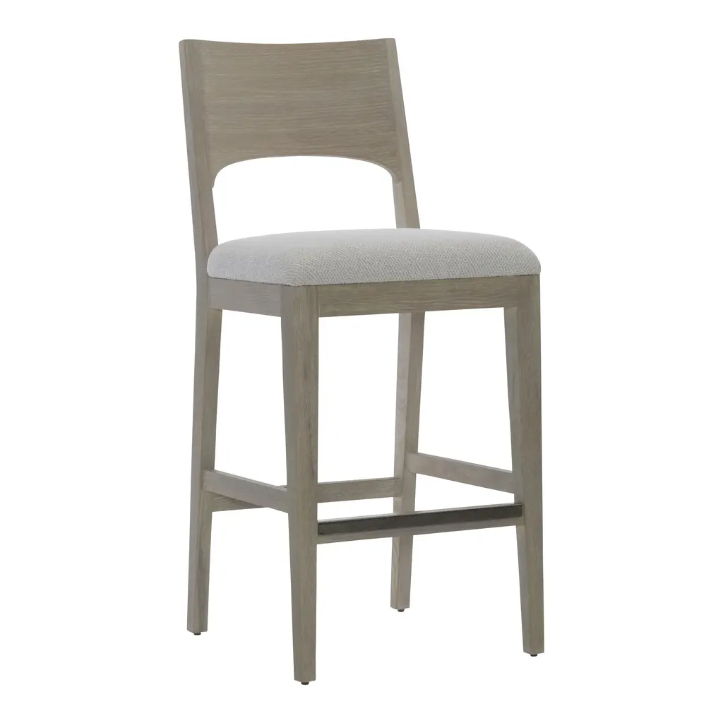The unadorned profile of the Solaria stool allows the flawless craftsmanship to be highlighted. A lovely arched back is created from quartered white oak veneers, while the frame is quartered ash solids, both with the Dune finish. An upholstered seat offers comfort while maintaining the quiet nature of the design. Features