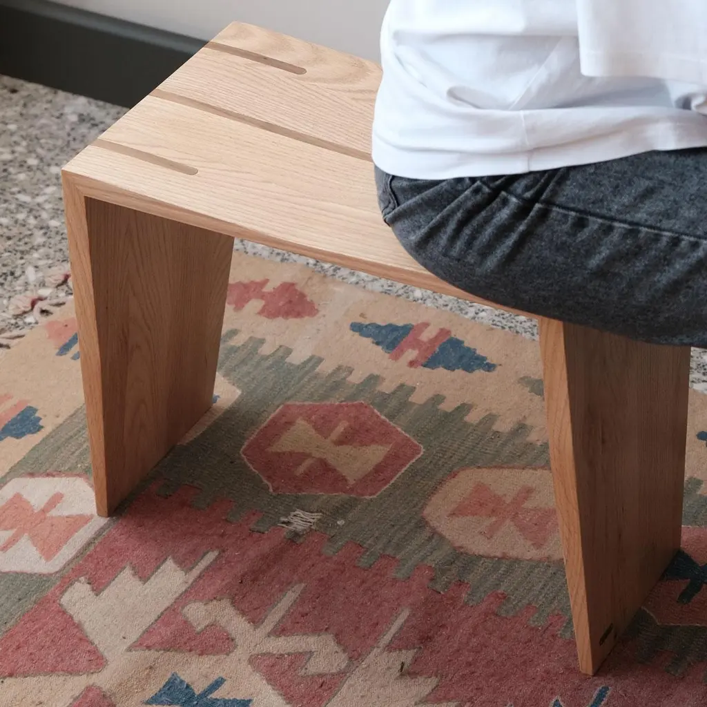 BRIDGE Series Minimal Solid Oak Stool SetCrafted from solid block oak and reinforced with elegant walnut joinery, the BRIDGE series stools balance clean aesthetics with everyday functionality. Their ergonomic form makes them a lightweight yet durable choice for kitchens, living rooms, entryways, and more. The stack-friendly design saves space, while the refined oak grain and walnut accents complement virtually any décor.Embodying Ananas’s design philosophy, each stool highlights the natural patterns and textures of oak, ensuring that no two pieces are exactly alike. Hand-finished and protected with a water-based matte lacquer, these modern solid-oak stools offer long-lasting beauty and extra resistance to scratches, stains, and deformation.