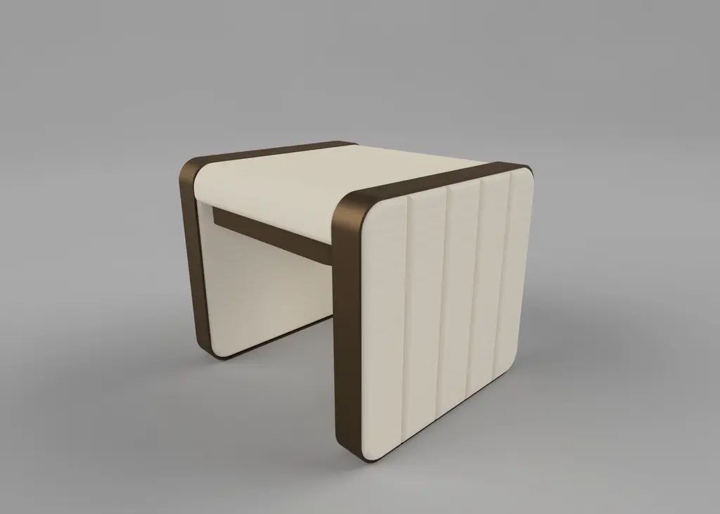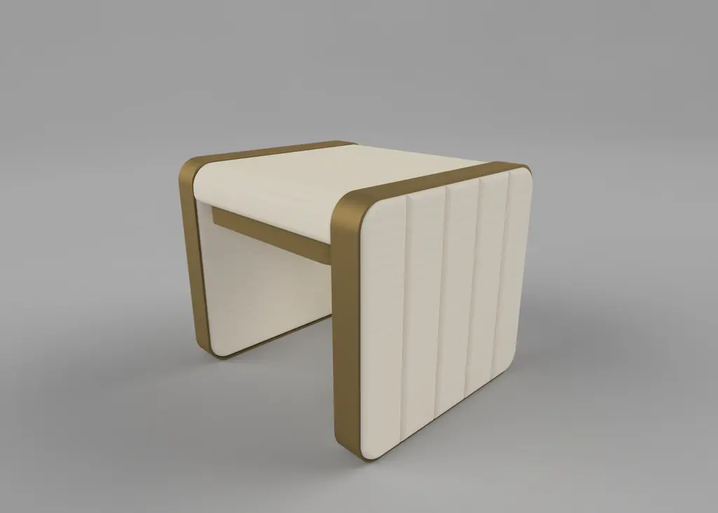 A glamorous combination of textured, sumptuous ivory bouclé fluted upholstery and metallic detailing come together to create the somnus stool. The perfect accompaniment to a dressing table, walk-in robe or master bathroom, the somnus stool will no doubt saturate the space with a dreamy glow. fabrics: boucle, jasper, novasuede, luxe velvet, deluxe velvet, velvet adamo metals: powder-coated (black, light bronze, dark bronze), blackened steel, antique brass tint, antique bronze tint. dimensions: 55 w x 50 d x 47 h cm the prince on display is for the ivory boucle with antique brass tint. Custom sizes are available upon request at a different price. Availability: made to order, normally delivered in 10 weeks. please check the pictures for fabrics and metal finishes.