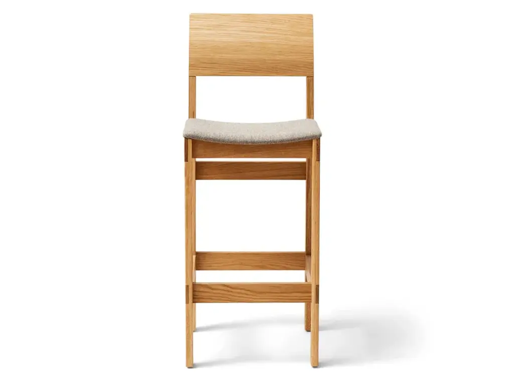 Sonder is a chair that offers high comfort with its long, curved backrest and soft, flat, U-shaped seat. The Sonder chair is characterised by a touch of Brutalism, with its sturdy legs and crossbars. This is combined with a fresh and exciting use of finely curved veneer on the seat and back. The chair is comfortable for long periods of time, as the long, curved backrest allows any user to find the optimum point of support for their back.The Sonder collection is a comfortable and sturdy range of furniture, designed to meet the demands of both domestic and commercial environments. With elegant modern joints and a strong construction built to last, each piece is crafted to withstand everyday knocks and blows. Over time, the natural patination of the wood will reveal even more of the collection’s subtle details. A beautiful and durable addition to your kitchen, office or dining area."The curvature of the back is inversed in comparison to a traditional chair. This activates the large surface of the backrest. The joints are specially designed to enhance the chair’s distinct and graphic expression." - Jonas Herman, Herman Studio