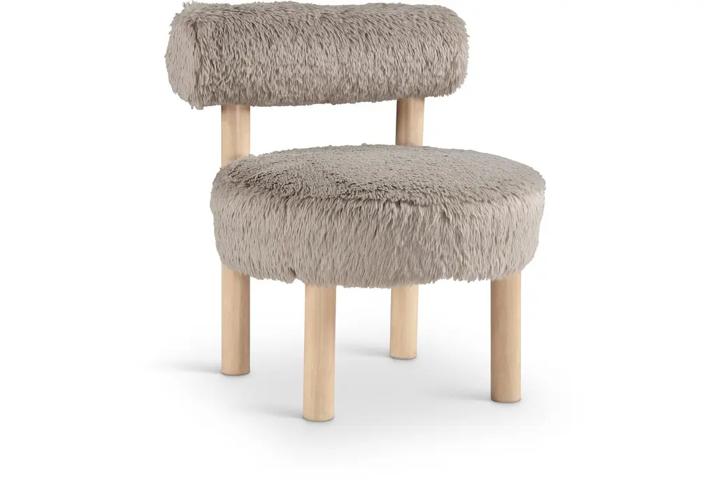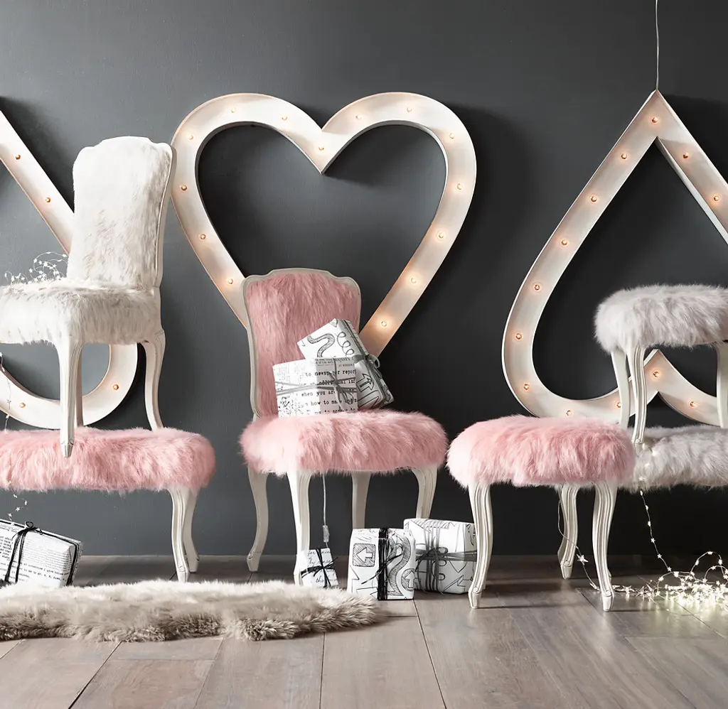 A classic Louis XV silhouette is given an extra dose of glamour when upholstered in lush faux fur. The comfortable frame features a gracefully carved apron and cabriole legs. GREENGUARD Gold Certified. Meets or exceeds stringent chemical emissions standards. Learn more.