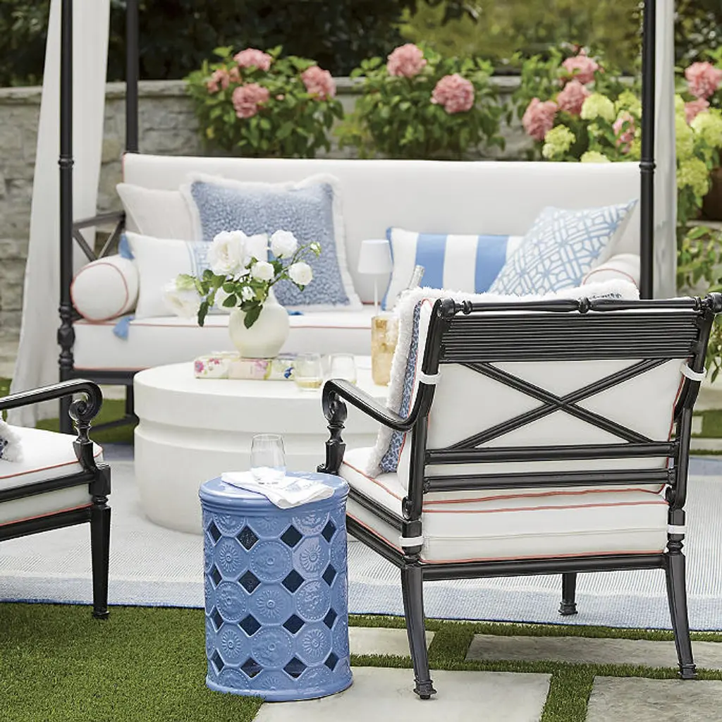A beautiful medallion pattern inspired by Parisian architecture accents our handpainted Soren Accent Stool. Crafted of 100% ceramic with an Air Blue or Blue finish, this stool can be used as a side table, extra seat, plant stand or as a decorative accent. 100% ceramic Hand-cast and glazed Finish will vary due to the glazing process and will not be identical to the image shown Suitable for indoor or outdoor use Wipe clean with a damp cloth; avoid harsh or abrasive chemicals that may damage the finish A Frontgate exclusive. At Frontgate, our primary focus is quality. We guarantee that every product we sell will stand up to the supreme test – our customers' satisfaction. To learn more about our policies, visit our Shipping & Processing, Returns & Exchanges and Warranty & Price Guarantee pages.