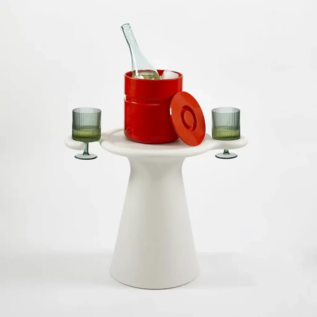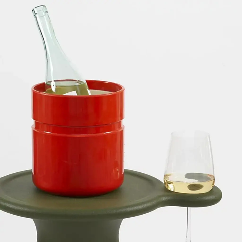 The SOS Outdoor Stool from Heller triumphs with a design that is fabulously functional, creating a daring, swirled sculpture that can be sat on or used as a small table. A playful design from the talented Designer Josh Owen, it was originally created in 2008 to explore the concept of “The stool as an object.” This outdoor stool is sustainably made from recycled polyethylene. The seat is stackable with others of its style, and it is refined for indoor use and can weather changing outdoor conditions. The attached handles offer points of movement and a place to suspend cups or stemware during a party.