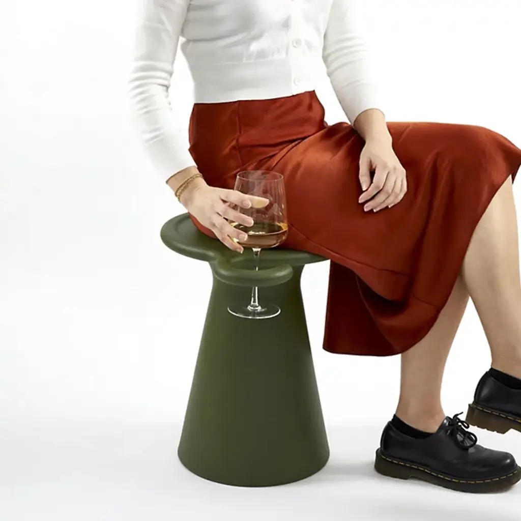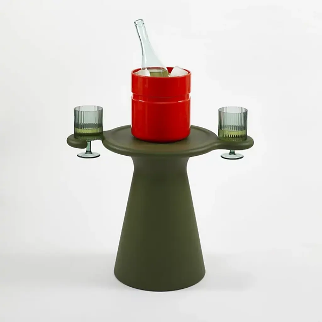 The SOS Outdoor Stool from Heller triumphs with a design that is fabulously functional, creating a daring, swirled sculpture that can be sat on or used as a small table. A playful design from the talented Designer Josh Owen, it was originally created in 2008 to explore the concept of “The stool as an object.” This outdoor stool is sustainably made from recycled polyethylene. The seat is stackable with others of its style, and it is refined for indoor use and can weather changing outdoor conditions. The attached handles offer points of movement and a place to suspend cups or stemware during a party.