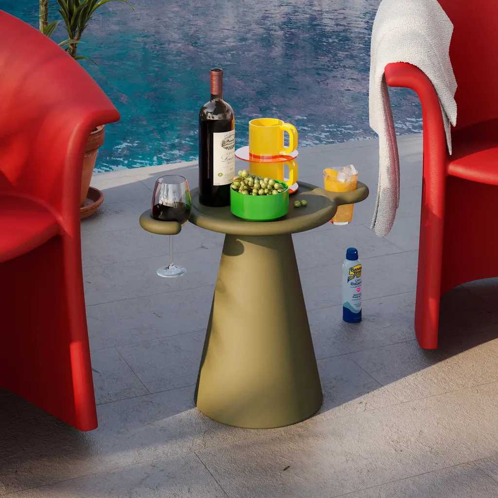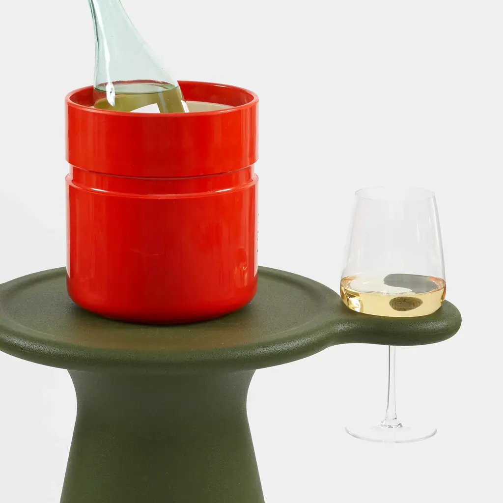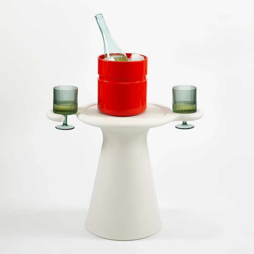 The SOS Stool and Side Table from Heller combines form and function to save the day in any space. Its sturdy form, perfect as a stool, doubles as a serving tool with handle-like hooks to securely hold your favorite glass of wine. The subtle rim prevents spills, while its lightweight and stackable design makes it a versatile indoor/outdoor option. Designed by renowned designer Josh Owen, this instant classic is a must-have for any home. Highlights