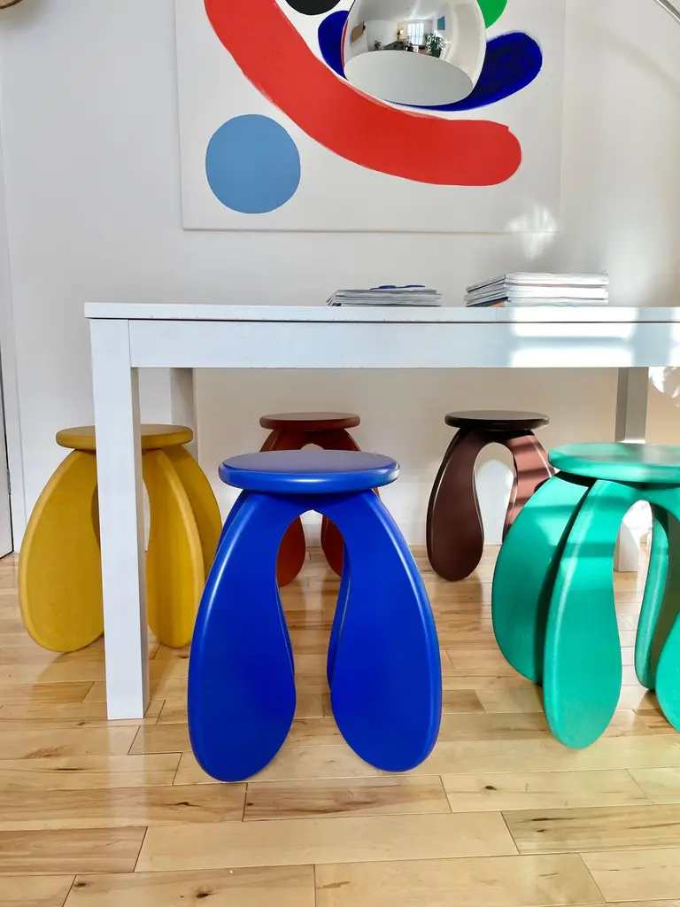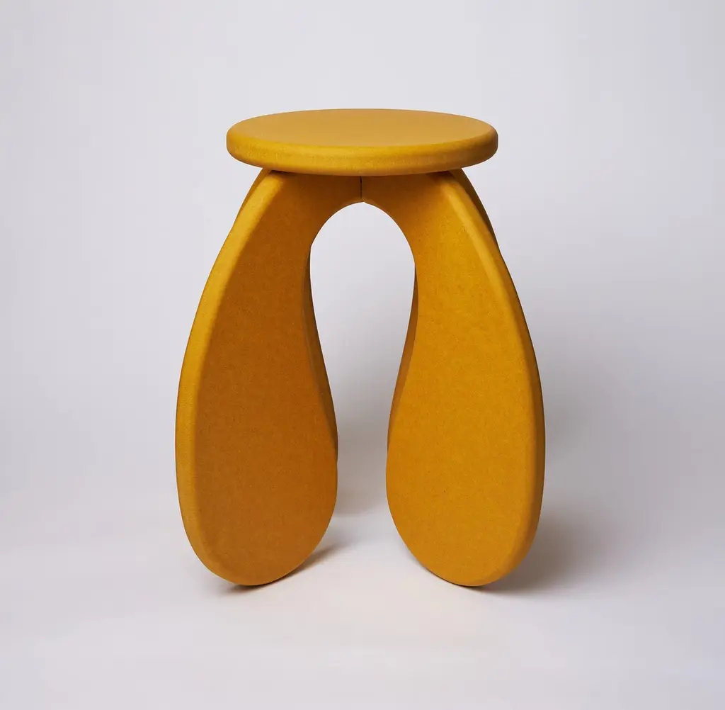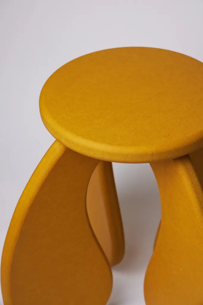 Maddy, the founder of squares & things was inspired by the Space Age and the sweeping architecture of Oscar Neimeyer's buildings for her second collection of furniture - SPACE Collection. The SPACE side table designed by squares & things in yellow Valchromat features a flat-pack design with a simple clip in system to assemble. Package includes care card and the customer will receive an assembly video. Also suitable as a stool for occasional sitting only. For indoor use only. Produced by Make Relief studio in Brighton, U.K.Valchromat is a form of MDF, made from recycled pine wood and woodchips from workshops and has been dyed throughout the grain using an organic dye. The surface has been finished in a layer of osmo oil to protect from spills and water marks.