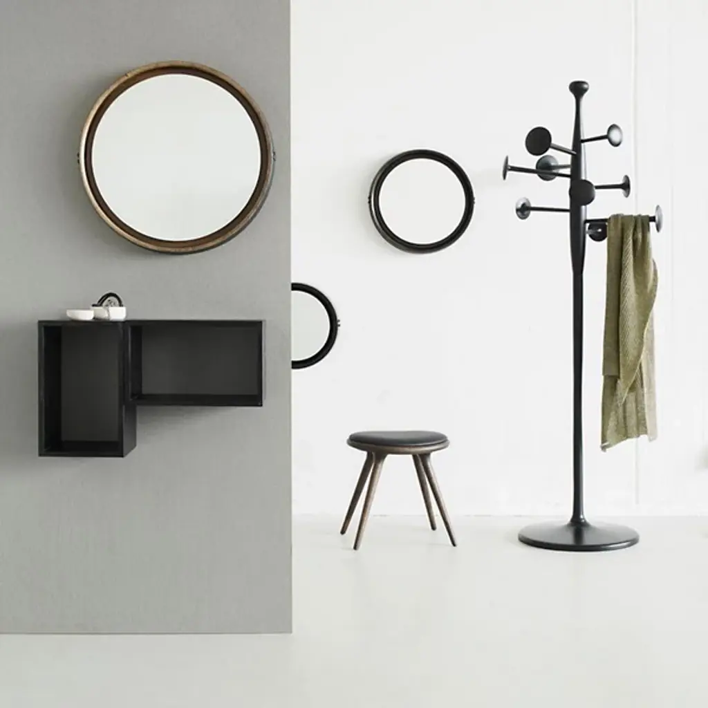 A beautiful wood grain with rich tones features smooth, organic lines of the Space Stool, Low. It's glistening base is made completely out of solid FSC-Certified oak, which is glazed in a water-based stain to enhance the details of the wood. The Space Stool, Low has a comfortable upholstered Italian leather seat that gives great contrast between materials. Durable and practical, the Space Stool, Low can be used anywhere.