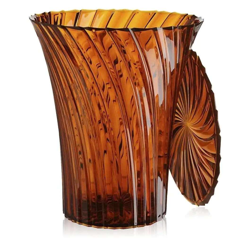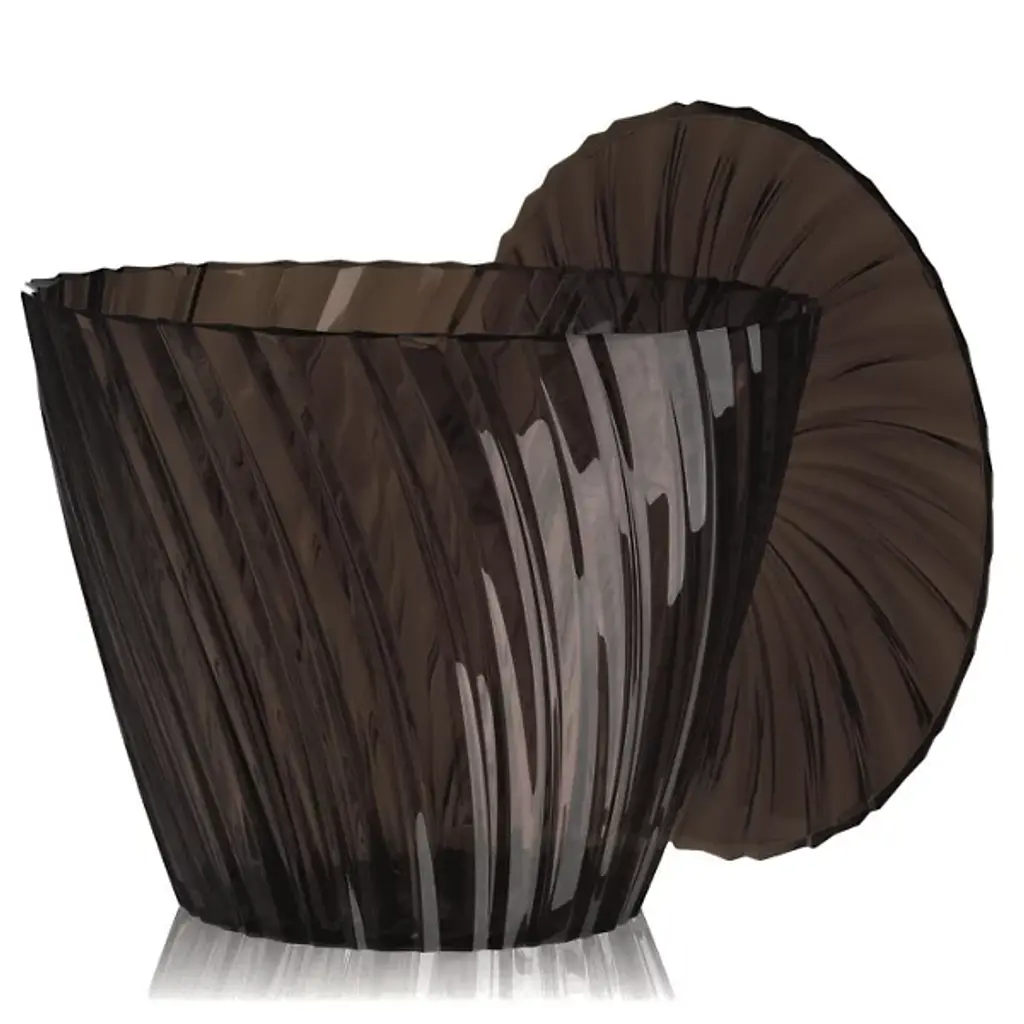 A sophisticated, spiraling, shimmering seat. The Kartell Sparkle Stool is made entirely out of PMMA plastic, with molded pleating on the interior and exterior surfaces for exceptional sparkle. In addition to providing flash and supplemental seating indoors and out, the hollow Sparkle Stool is also useful for storage of blankets or pillows. Designed by Tokujin Yoshioka.
