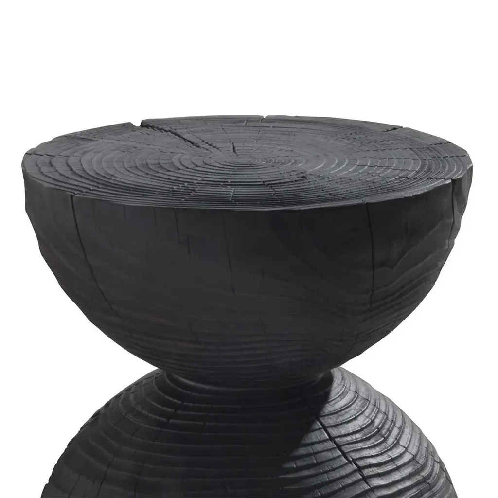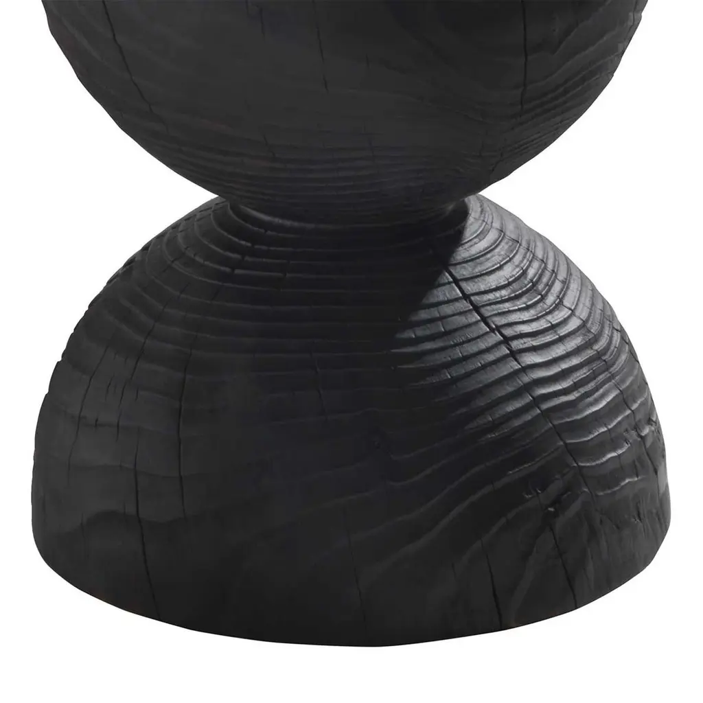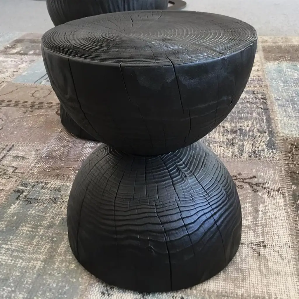 Stool spheres burnt in solid natural aromatic cedar wood in burnt finish.Made in on block of cedar wood. Sinuous and wavy movement. Elegantand original piece. Solid cedar wood include movement, cracks and changesin wood conditions, this is the essential characteristic of natural solid cedarwood due to natural settlement and different environmental conditions.