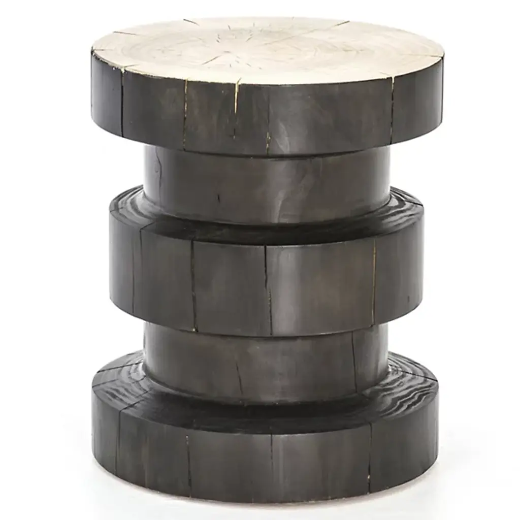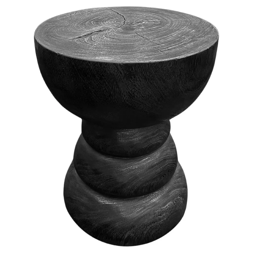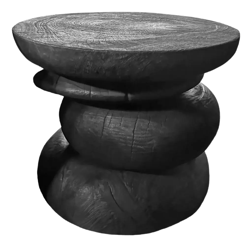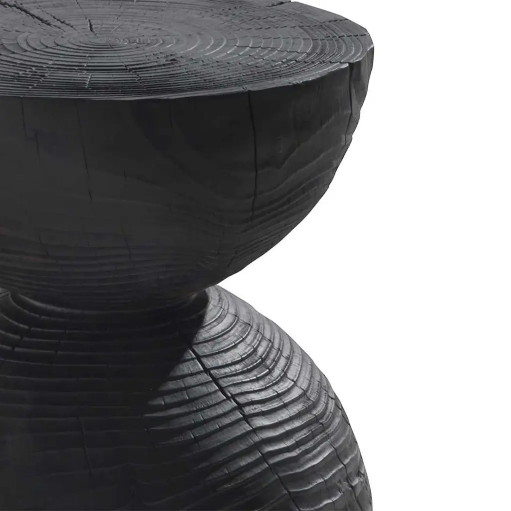 Stool spheres burnt in solid natural aromatic cedar wood in burnt finish.Made in on block of cedar wood. Sinuous and wavy movement. Elegantand original piece. Solid cedar wood include movement, cracks and changesin wood conditions, this is the essential characteristic of natural solid cedarwood due to natural settlement and different environmental conditions.