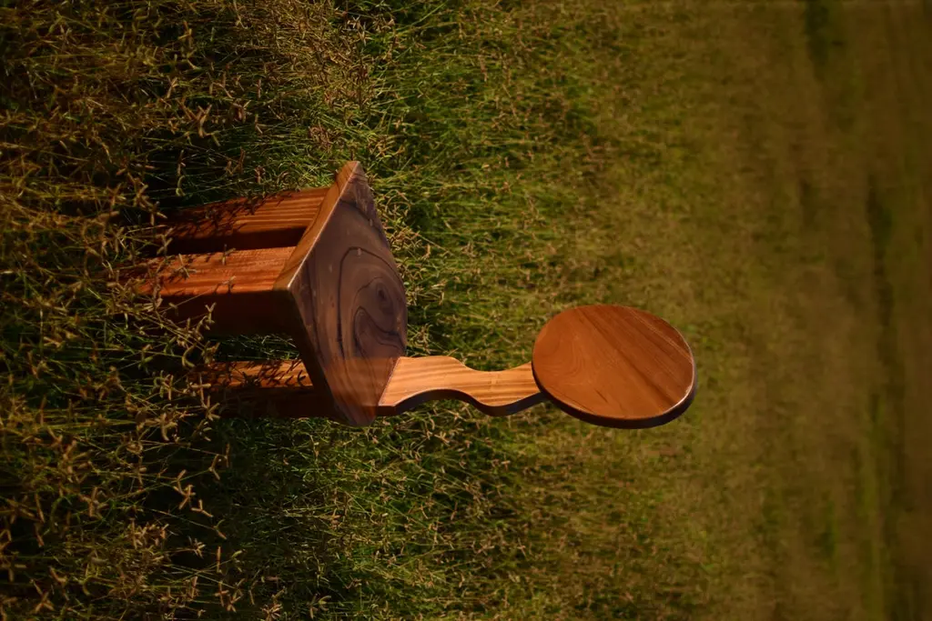 Spirituality Stool by Ella BulleyLimited Edition Of 15 PiecesDimensions: D 40 x W 40 x H 116 cm.Materials: Walnut and red wood.Ella Bulley is a Material Design Studio based in London, creating work that frequently crosses the realms of textiles, products, art, and set design. Using contextual research and material experiments intersected with artisan techniques to direct the design approach, it becomes a tool to transform the raw into the refined. The design outcomes whether objects or experiences, narrate the craft process, material research, and explored themes of historical, social, and cultural movements. Before establishing the studio, Ella completed a design residency at the Design Museum, in London. Ella was also listed as a Crafts Council design graduate to watch in 2014 and 'Project Saccharum’ was awarded the ‘Form 2015: Innovative Craft’ award for its use of sugar as a material. Our work has gone on to be exhibited at London Design Festival, Milan Design Week, Tendence, Ambiente, Sommerset House and the Design Museum, London.