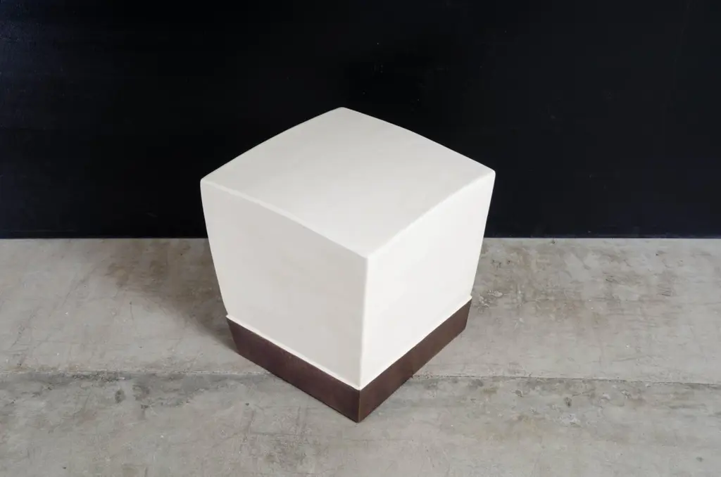 Square Crown Drumstool, Cream Lacquer By Robert Kuo, Hand Repousse, Limited