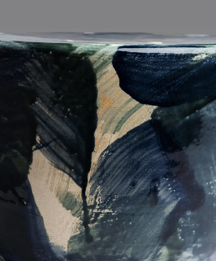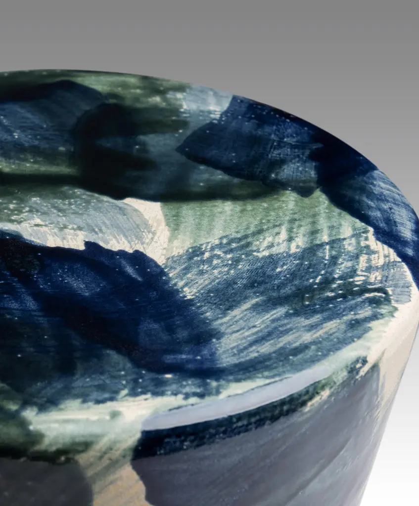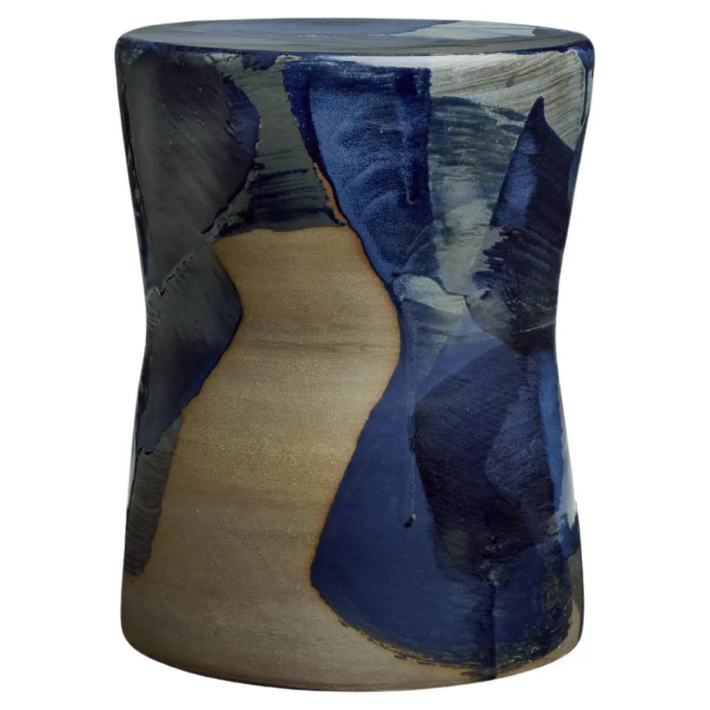Functional and decorative stoneware object, crafted by pinching and coiling. The ceramic surface is applied either with a brush or by pouring. Each piece of this collection is unique.This Functional and decorative object is served as both a stool and coffee table which is designed by pinching and coiling methods. The ceramic surface is applied either with a brush or by pouring. The entire structure is made of handmade. This object can also make use as a bedside table. Used for indoor purposes.