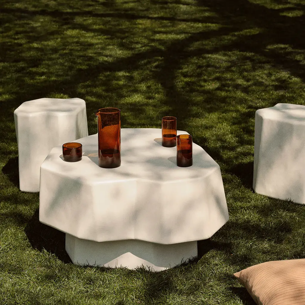 Inspired by the unique volcanic rock formations found on the ancient island of Staffa in Scotland, the Staffa collection features a series of bold furniture pieces. Paying homage to their namesake, which means pillar in old Norse, every piece is crafted entirely from glass fiber reinforced concrete, using an innovative casting process that provides each item with a rough, uneven shape reminiscent of blocks of carved stone. Suitable for both indoor and outdoor use, the Staffa Stool presents an intriguing piece that blurs the line between art and functionality. Use it as a stool or a side table and watch as it naturally sparks conversation.
