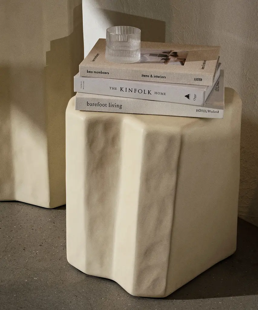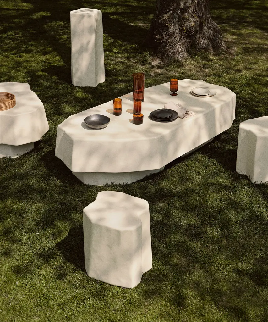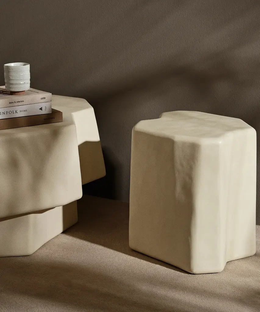 Inspired by the unique volcanic rock formations found on the ancient island of Staffa in Scotland, the Staffa collection features a series of bold furniture pieces. Paying homage to their namesake, which means pillar in old Norse, every piece is crafted entirely from glass fibre reinforced concrete, using an innovative casting process that provides each item with a rough, uneven shape reminiscent of blocks of carved stone. Suitable for both indoor and outdoor use, the Staffa Stool presents an intriguing piece that blurs the line between art and functionality. Use it as a stool or a side table and watch as it naturally sparks conversation.Designed and produced by the Copenhagen-based studio Ferm Living.