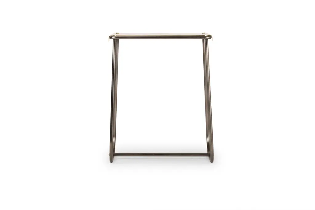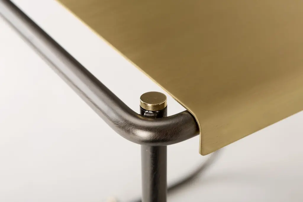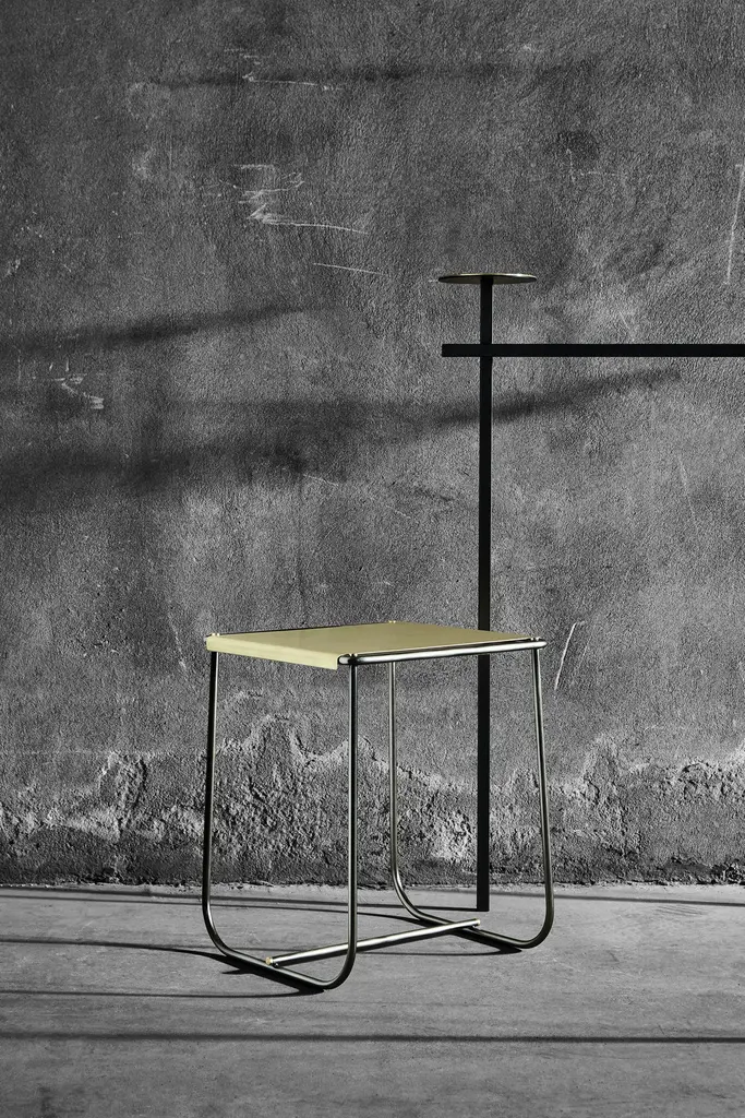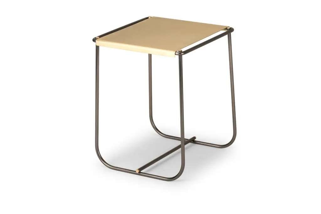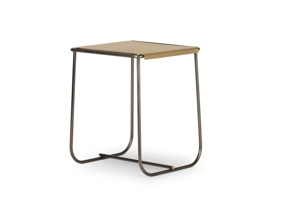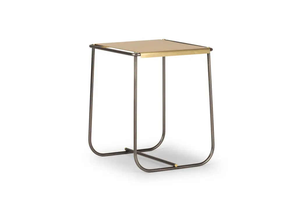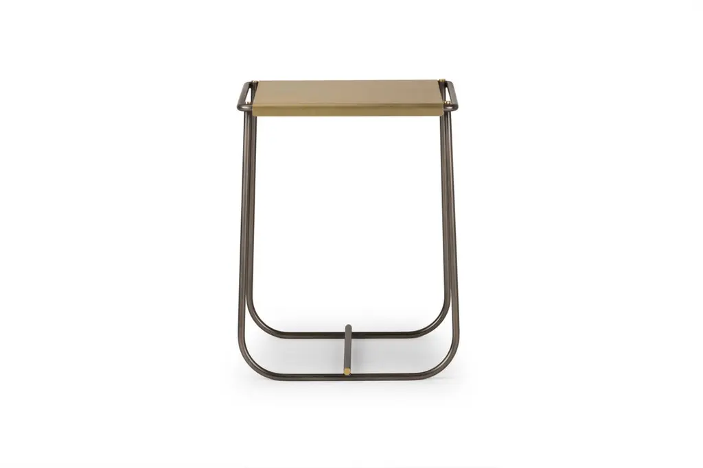 Stam stool by MingardoDimensions: D 37 x W 36.5 x H 46.5 cm Materials: Bent metal tube structure and natural brass seatWeight: 12 kgAlso available in different finishes. A bent metal tube surrounds the seat made in natural brass. Brass screws at the end of the tubes enrich this simple looking furniture.Mingardo Ilario founded Mingardo Blacksmith Workshop in 1970, after over twenty years’ experience in the metal processing field.The production was initially focused on simple blacksmith works for the construction industry. Over the time, it has become more refined, enabling the company to collaborate with internationally renowned companies and architects: from the first collaborations with architect Carlo Scarpa to the more recent commissions for Museo del Novecento in Milan, Parco della Musica in Florence, and Teatro Petruzzelli in Bari.Over the years, the Workshop has achieved great results, with the production of unique metal products, all hand-wrought by a highly skilled team of specialized artisans. Nowadays, it is highly regarded in the local artisan field for its high-end refined finishing touches and details, and for its know-how.