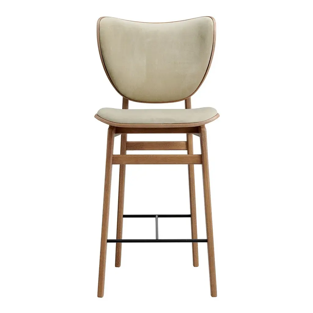 This solid and reassuring stool designed by Matteo Ragni features an embracing backrest with two sharp cuts inspired by star points. The backrest has a wood rear panel that enhances the material's natural quality. Intended for contract environments, this stool fits discreetly with generous padding on both seat and backrest for enhanced comfort. The frame is finished in a lacquered finish, with upholstery in zenith fabric.