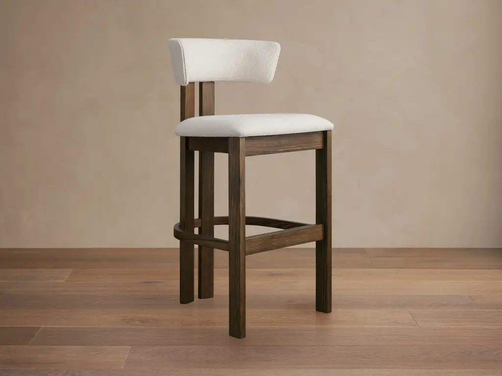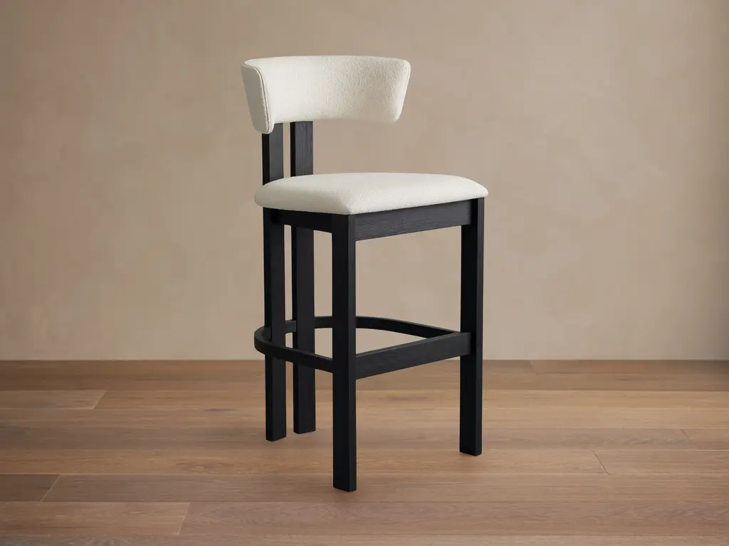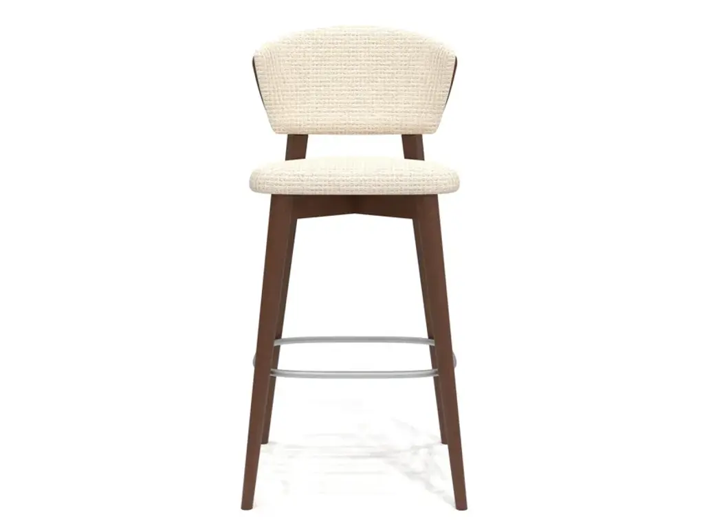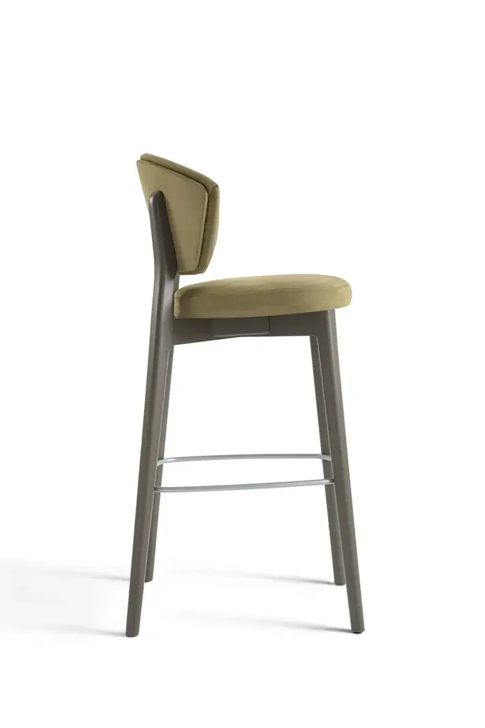 Stella 819 is a high stool with a solid beech wood frame and upholstered seat/backrest. Unlike Stella 818, the back of the backrest is upholstered.Stella is a collection featuring a solid and reassuring chair, distinguished by an enveloping backrest that ends with two sharp cuts inspired by the points of a star.In both the chair and the lounge chair and stool, the backrest is available either fully upholstered or with a wooden back to highlight the material.Designed by Matteo Ragni, Stella is intended for contract environments where it blends in discreetly.Comfort is guaranteed by the generous padding of the seat and backrest.