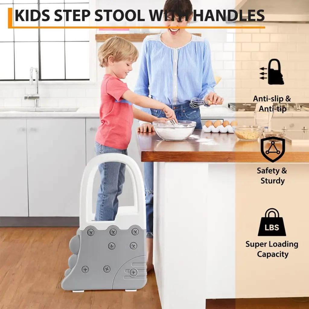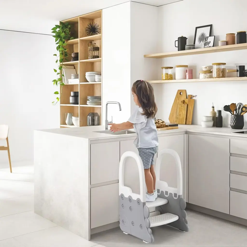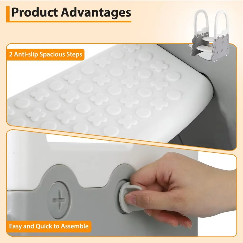 This versatile Step Stool is the perfect helper for your home, designed to provide safe and easy access to sinks, counters, and toilets. Featuring sturdy handrails and two steps, it offers extra stability and support for toddlers and kids, making it ideal for potty training and everyday use. The anti-slip surface ensures safety on any floor, whether in the bathroom, kitchen, or other areas where a little boost is needed.Crafted with durable materials, this step stool is built to last and withstand daily use. Its compact design fits neatly under counters and sinks when not in use, saving space without sacrificing convenience. The dual-step design helps children reach higher surfaces comfortably, encouraging independence and confidence.Key Features:- Sturdy handrail for added safety and balance- Two-step design for easy climbing and reaching- Anti-slip surface to prevent slips and falls- Suitable for bathroom sinks, kitchen counters, toilets, and more- Durable construction for long-lasting use- Lightweight and portable for easy moving and storageWhether you need astool, a bathroom step stool, or a potty training aid, this multi-functional step stool is the perfect solution. It supports your child’s growth and independence while providing peace of mind with its safe, reliable design. Make everyday tasks easier and safer with this essential home accessory.