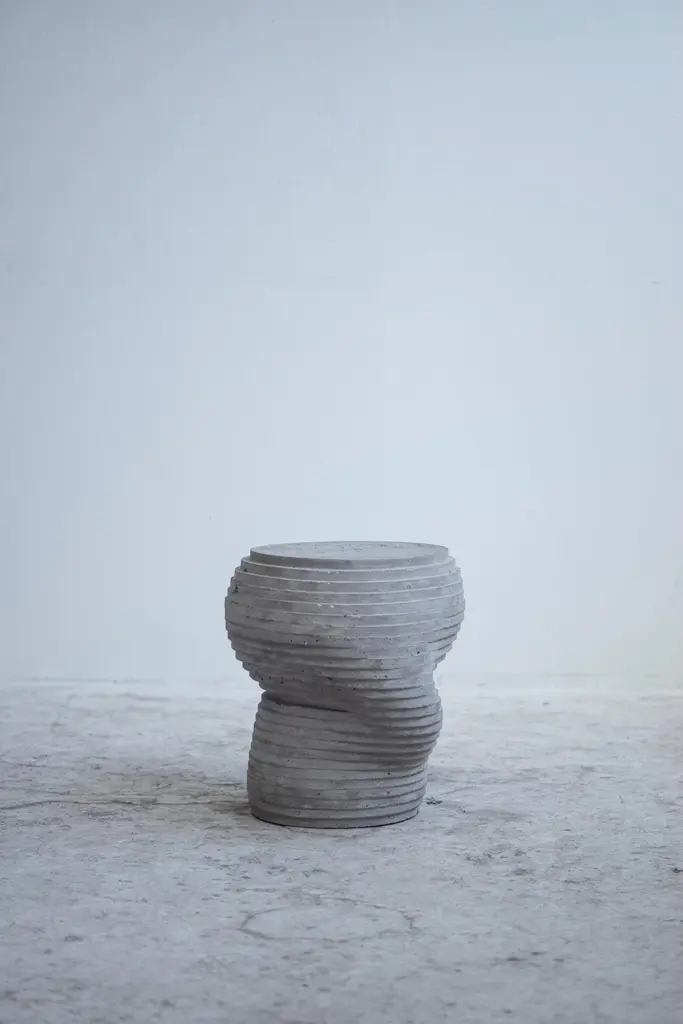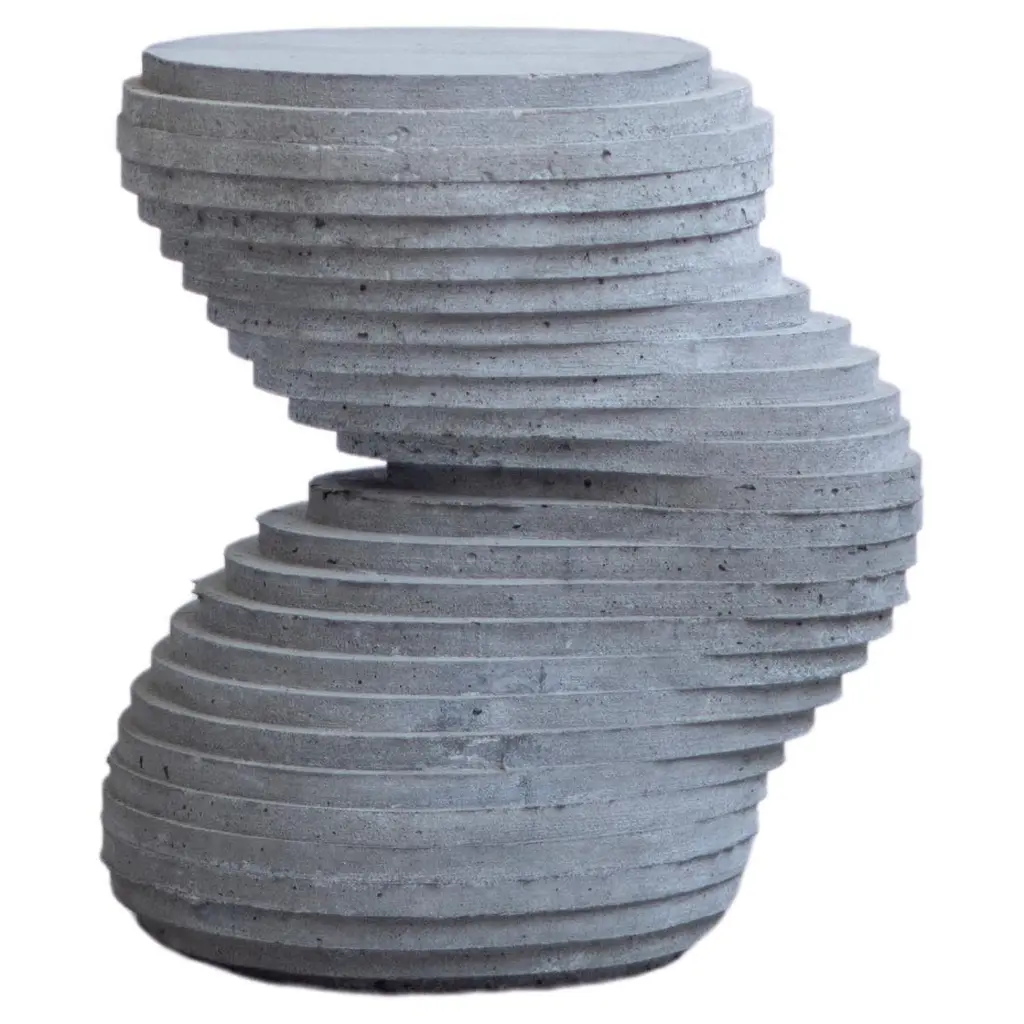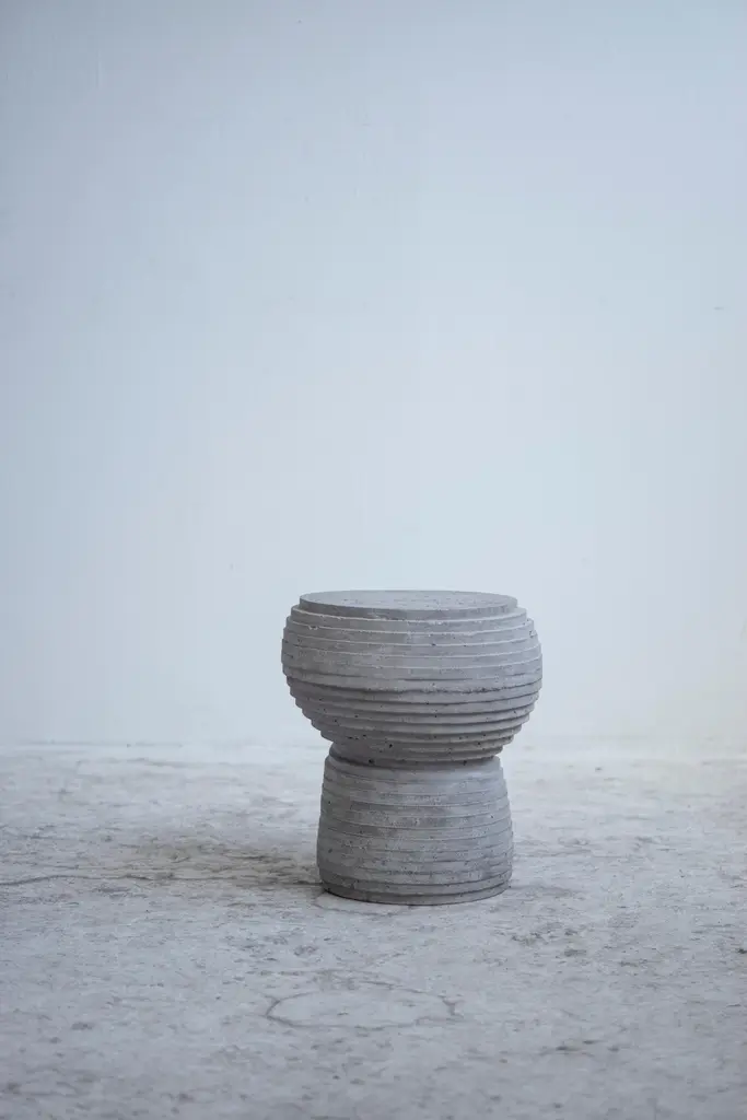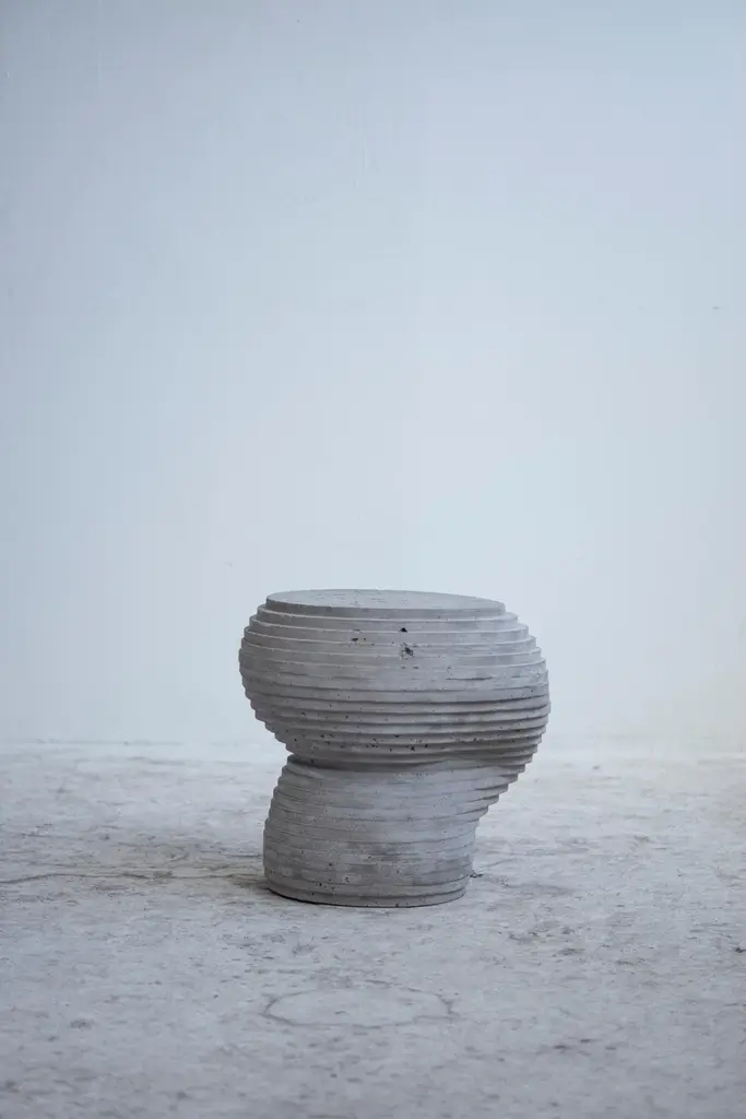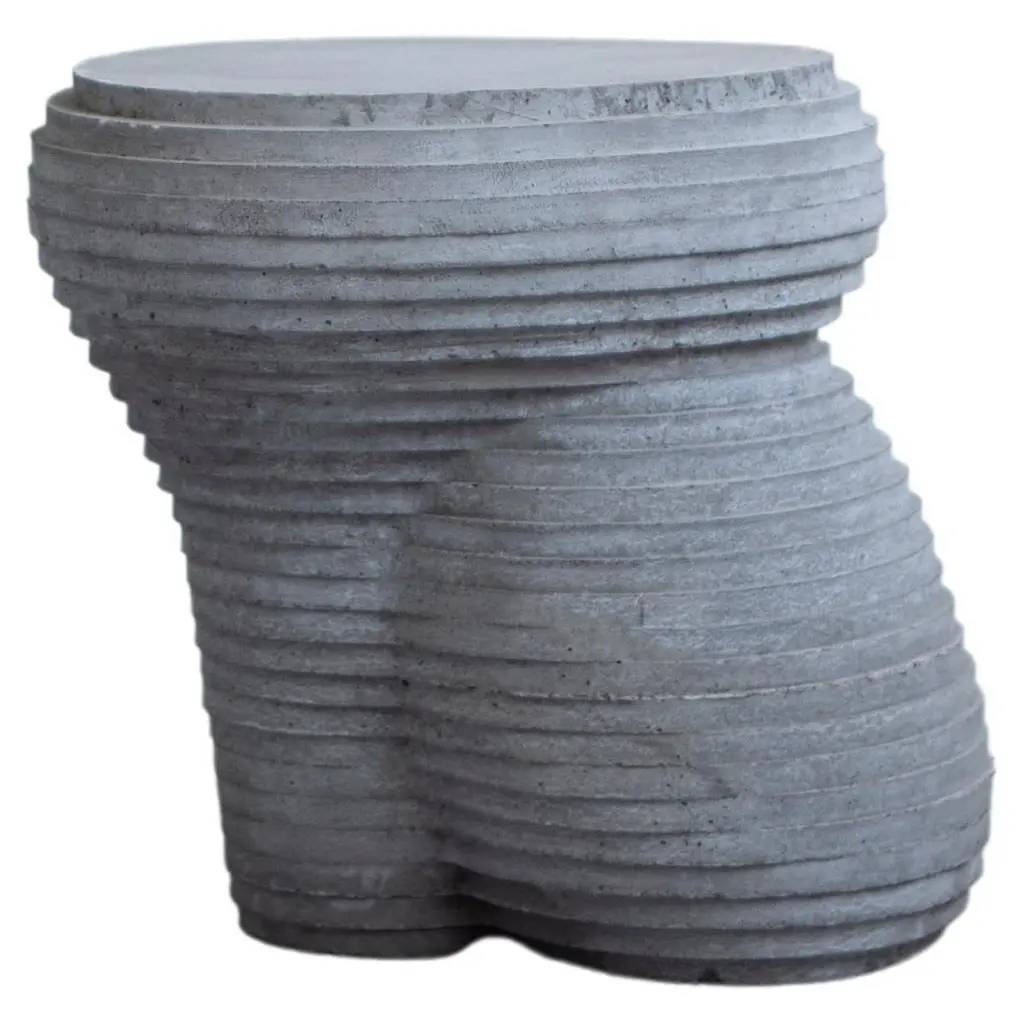 Hand-cast stool that can be used for seating, as a side table or as a sculptural object. For indoor and outdoor use.At the intersection of art, craft, and design, Concrete Poetics' debut collection of hand-cast cement sculptural furniture and accessories streamlines visually intriguing and dynamic forms juxtaposing the density of the material.Raw, brutal, visceral, and striking optical qualities are embedded in the ensemble of modular candle holders, bowls, vessels, side tables, and stools, alluding to ceremonies, rituals, and celebrations.The inspiration comes within the process. The shapes, patterns, and arrangements are created intuitively, informed by nature, land, and sea, to then later be articulated, making them suitable for casting. Ultimately exhilarated by the wabi-sabi sensibility, the urban and industrial surroundings, the final result is very organic, embracing the irregularity and the imperfection that makes every piece exceptional.THESE PIECES ARE NOT MASS-PRODUCED. THEY ARE HANDMADE LOCALLY IN NEW YORK CITY, ON-DEMAND OR SMALL-BATCH, USING ARTISANAL MOLD-MAKING AND CASTING TECHNIQUES. THEY ARE SUSCEPTIBLE TO INACCURACY AND DEVIATION DURING THE MAKING OF THE CASTS. THEREFORE THE EXECUTED PIECES ARE NOT IDENTICAL TO THOSE SHOWN IN THE PICTURES. IMPERFECTION AND UNIQUENESS ARE EMBRACED AND EMBOLDENED AS PART OF THE CREATIVE PROCESS AND AN INTRINSIC PART OF THE BRAND'S IDENTITY.