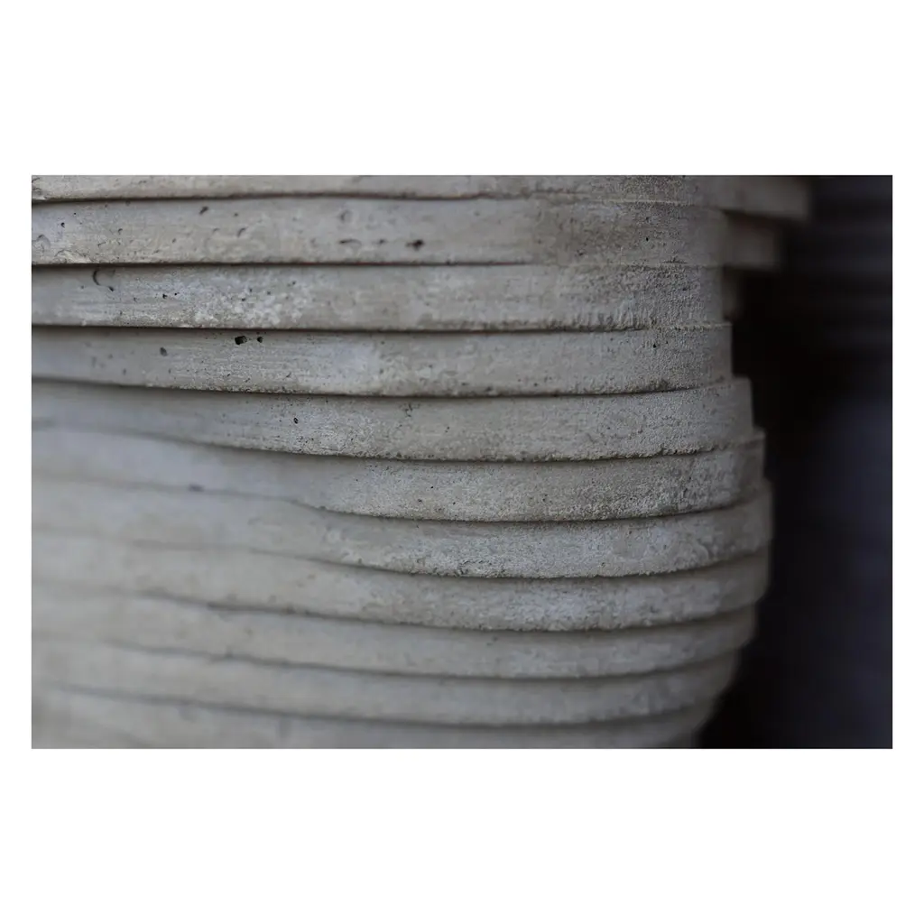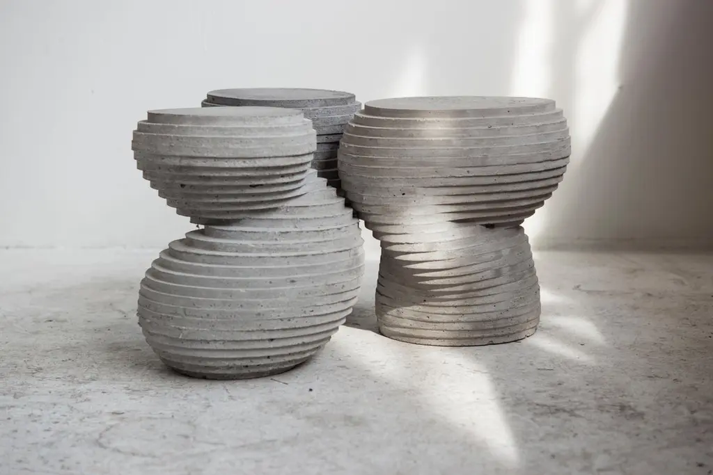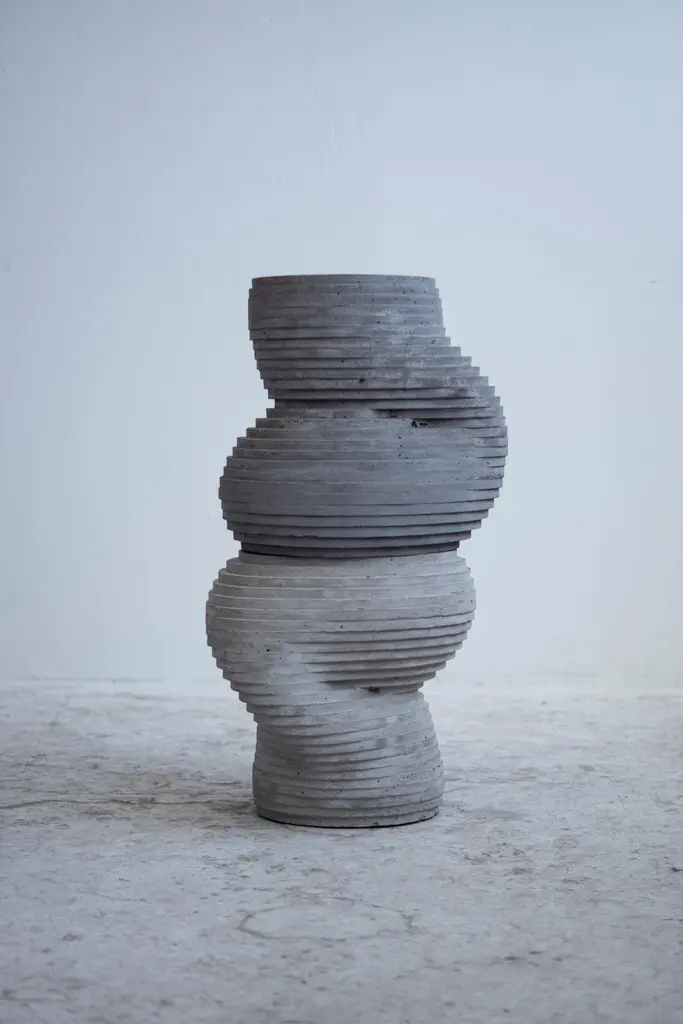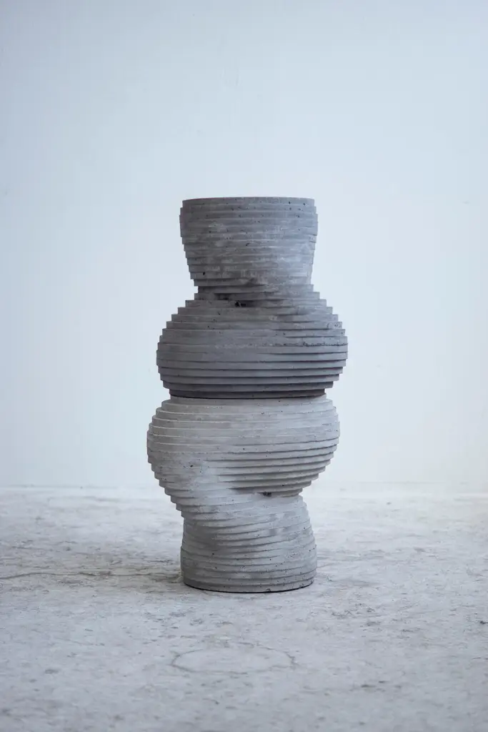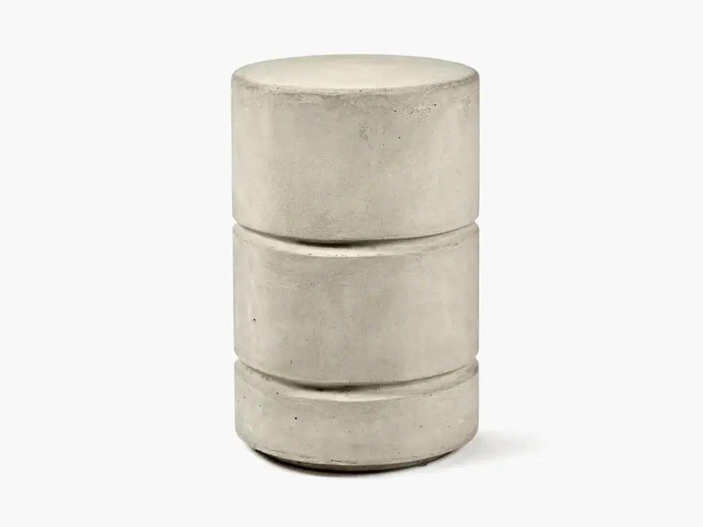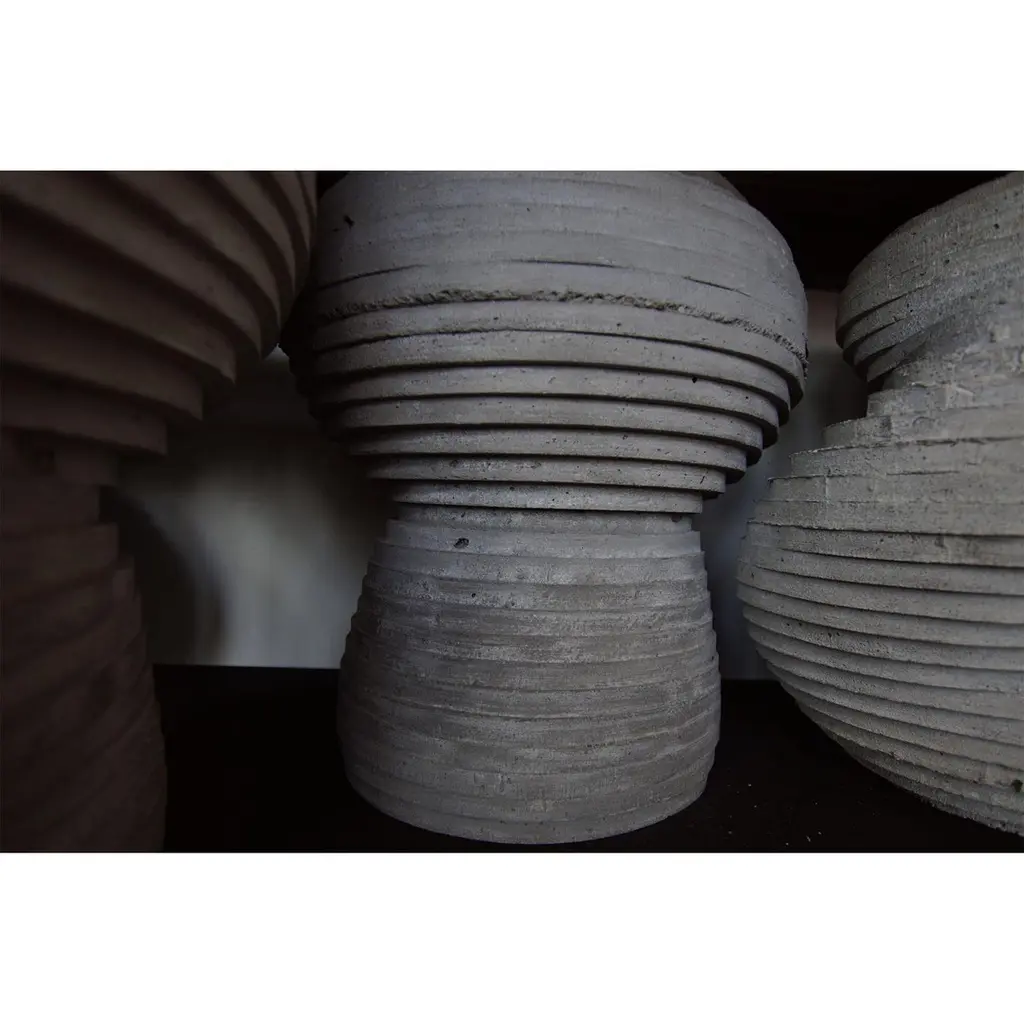 Hand-cast stool that can be used for seating, as a side table or as a sculptural object. For indoor and outdoor use.At the intersection of art, craft, and design, Concrete Poetics' debut collection of hand-cast cement sculptural furniture and accessories streamlines visually intriguing and dynamic forms juxtaposing the density of the material.Raw, brutal, visceral, and striking optical qualities are embedded in the ensemble of modular candle holders, bowls, vessels, side tables, and stools, alluding to ceremonies, rituals, and celebrations.The inspiration comes within the process. The shapes, patterns, and arrangements are created intuitively, informed by nature, land, and sea, to then later be articulated, making them suitable for casting. Ultimately exhilarated by the wabi-sabi sensibility, the urban and industrial surroundings, the final result is very organic, embracing the irregularity and the imperfection that makes every piece exceptional.THESE PIECES ARE NOT MASS-PRODUCED. THEY ARE HANDMADE LOCALLY IN NEW YORK CITY, ON-DEMAND OR SMALL-BATCH, USING ARTISANAL MOLD-MAKING AND CASTING TECHNIQUES. THEY ARE SUSCEPTIBLE TO INACCURACY AND DEVIATION DURING THE MAKING OF THE CASTS. THEREFORE THE EXECUTED PIECES ARE NOT IDENTICAL TO THOSE SHOWN IN THE PICTURES. IMPERFECTION AND UNIQUENESS ARE EMBRACED AND EMBOLDENED AS PART OF THE CREATIVE PROCESS AND AN INTRINSIC PART OF THE BRAND'S IDENTITY.