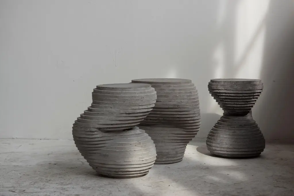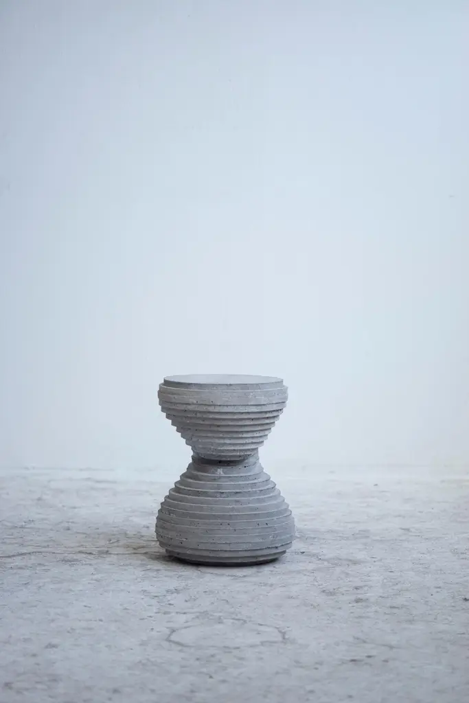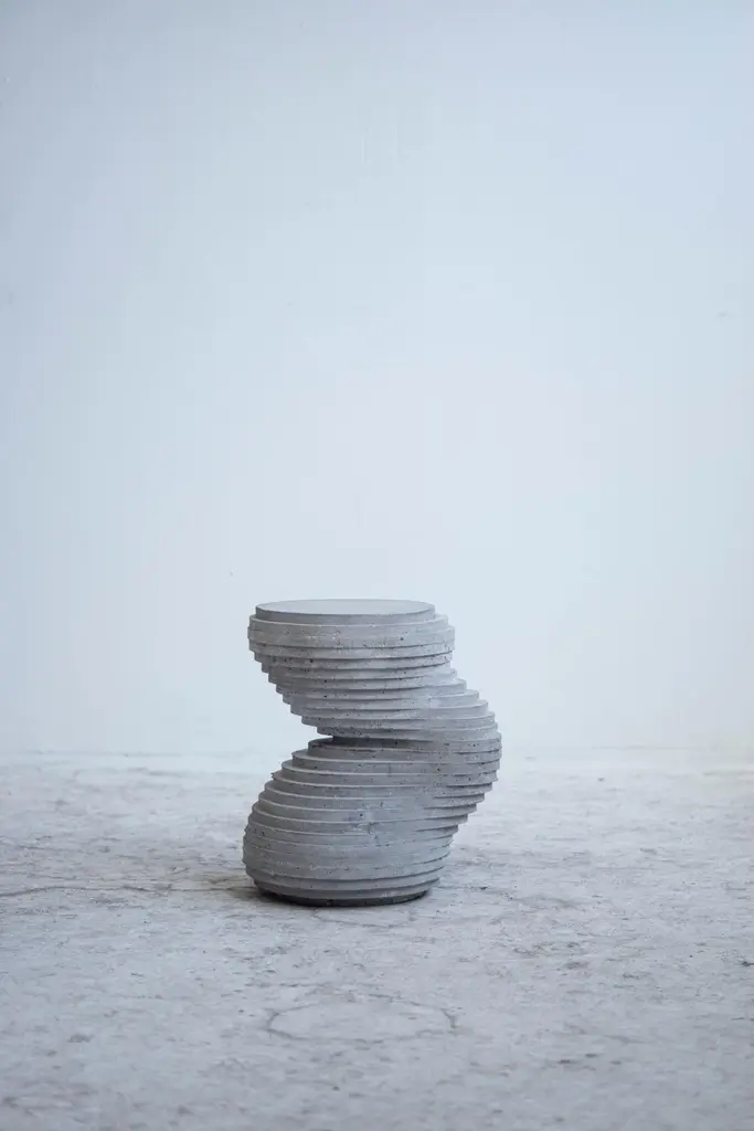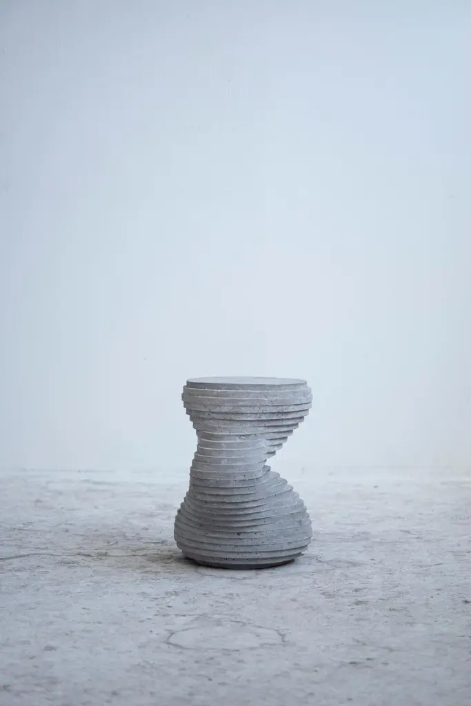 Hand-cast stool that can be used for seating, as a side table or as a sculptural object. For indoor and outdoor use.At the intersection of art, craft, and design, Concrete Poetics' debut collection of hand-cast cement sculptural furniture and accessories streamlines visually intriguing and dynamic forms juxtaposing the density of the material.Raw, brutal, visceral, and striking optical qualities are embedded in the ensemble of modular candle holders, bowls, vessels, side tables, and stools, alluding to ceremonies, rituals, and celebrations.The inspiration comes within the process. The shapes, patterns, and arrangements are created intuitively, informed by nature, land, and sea, to then later be articulated, making them suitable for casting. Ultimately exhilarated by the wabi-sabi sensibility, the urban and industrial surroundings, the final result is very organic, embracing the irregularity and the imperfection that makes every piece exceptional.THESE PIECES ARE NOT MASS-PRODUCED. THEY ARE HANDMADE LOCALLY IN NEW YORK CITY, ON-DEMAND OR SMALL-BATCH, USING ARTISANAL MOLD-MAKING AND CASTING TECHNIQUES. THEY ARE SUSCEPTIBLE TO INACCURACY AND DEVIATION DURING THE MAKING OF THE CASTS. THEREFORE THE EXECUTED PIECES ARE NOT IDENTICAL TO THOSE SHOWN IN THE PICTURES. IMPERFECTION AND UNIQUENESS ARE EMBRACED AND EMBOLDENED AS PART OF THE CREATIVE PROCESS AND AN INTRINSIC PART OF THE BRAND'S IDENTITY.