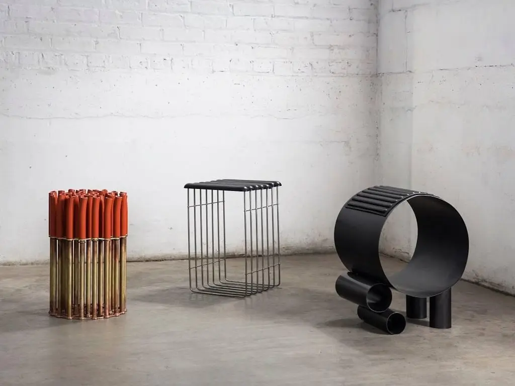 Formed leather supported by machines aluminium, raised up by formed stainless steel.