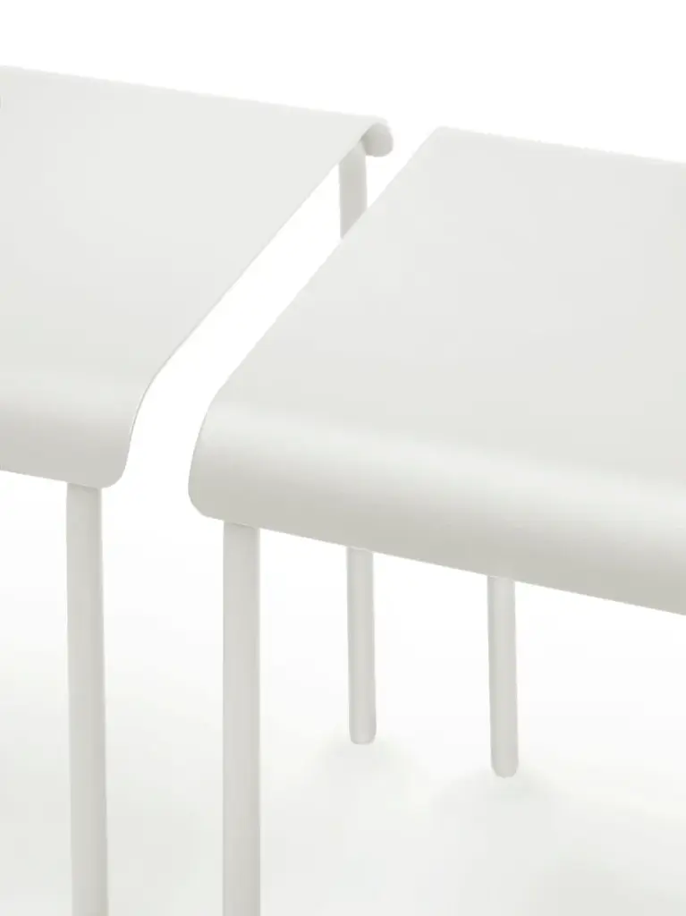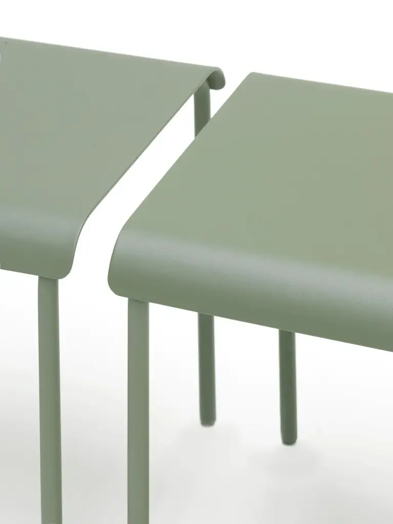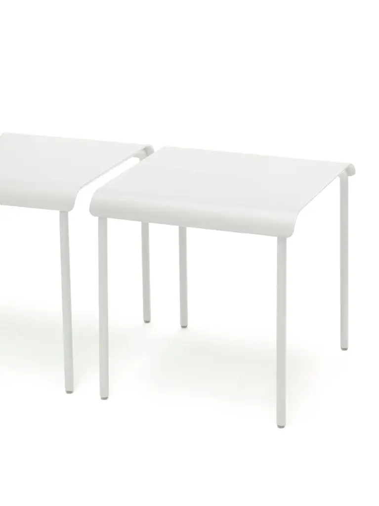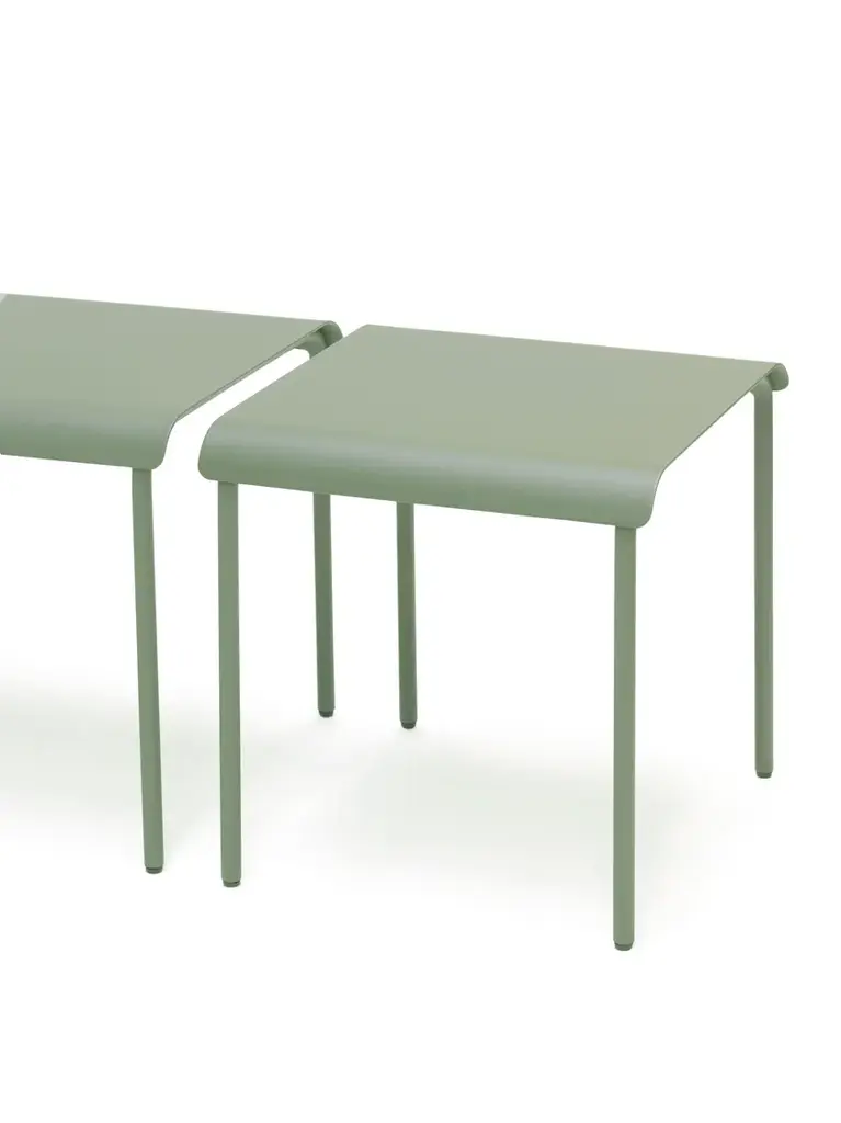 Stool August is an aluminum outdoor stool.The August collection by Vincent Van Duysen for Serax is made of aluminium and it is available with a black, white or eucalyptus green powder coating. This makes it suitable for both indoor and outdoor use. The chairs, stools, benches and tables articulate the sheer simplicity of the monastic life they were inspired by. With a vision that results from an unbridled curiosity, Vincent Van Duysen always creates an all-inclusive atmosphere in which he seamlessly interweaves architecture, interior design, and design objects. A vision to which he also stayed true when he was commissioned to convert the monastery of the former military hospital in Antwerp into a hotel. For the terrace he designed the August collection, a series of minimalist chairs that effortlessly link the history of the environment to a modern interpretation. August by Vincent Van Duysen for Serax is made of powder coated aluminium, available in muted shades. This makes it suitable for both indoor and outdoor use. The chairs, lounge chairs, sun loungers, tables and stools articulate the sheer simplicity of the monastic life they were inspired by. The wider, slightly lower proportions of the lounge chairs are of this day and age and contribute to modern-day comfort.