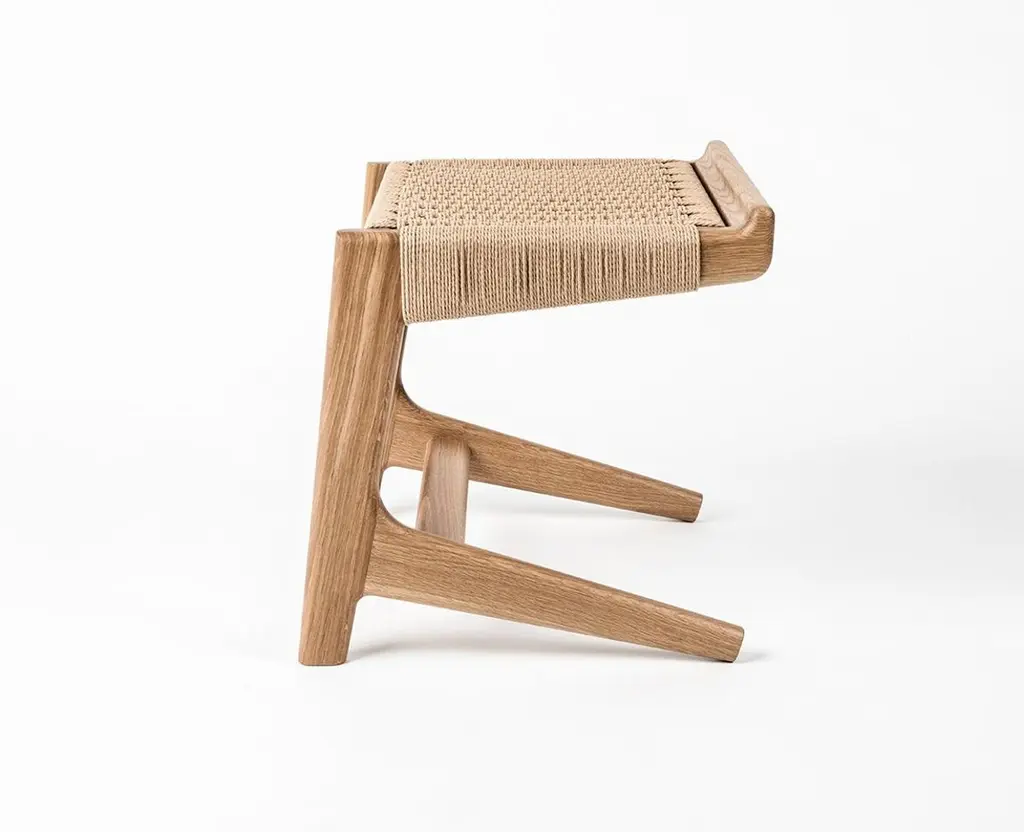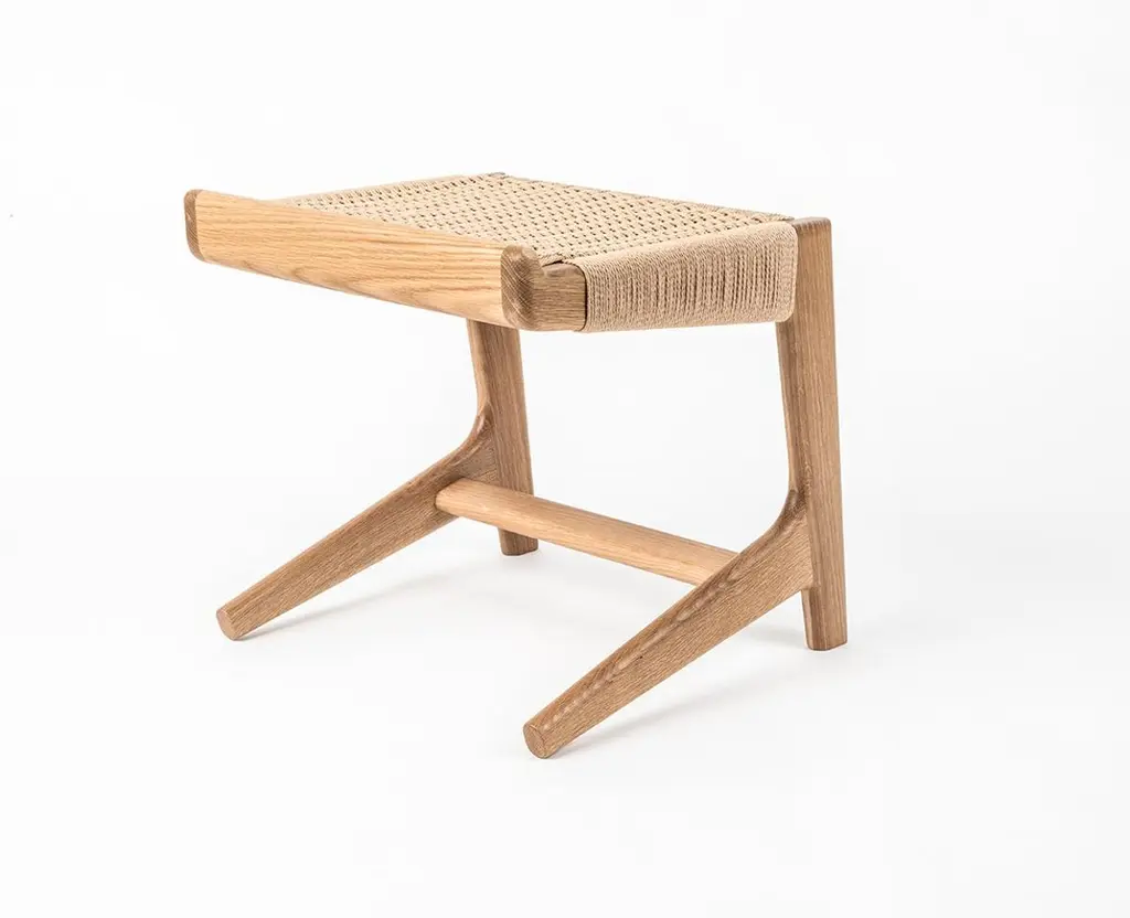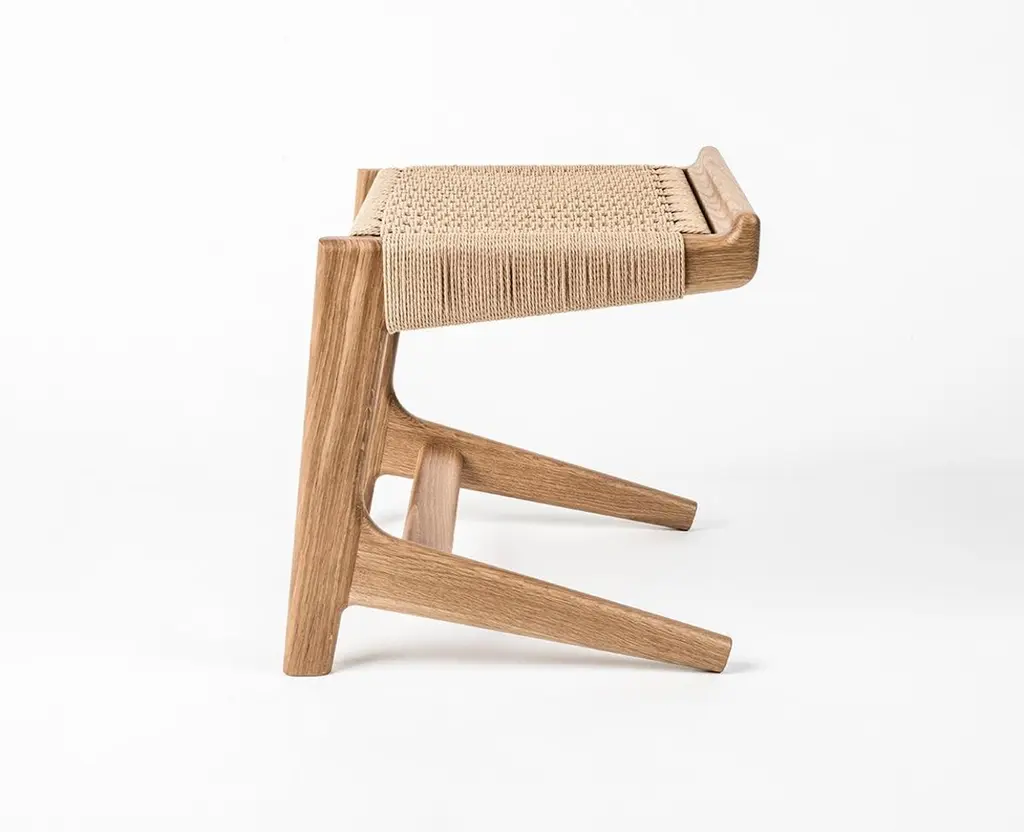 Mid Century inspired Rian Cantilever Stool made out of white oak hardwood and danish cord. The lead time provided is an estimate and may extend up to 12 months. If you require delivery by a specific date, we kindly recommend inquiring prior to purchase to ensure availability.Custom sizes available. Can be made with any domestic or exotic hardwood of your choosing. Danish cord comes in three colors: Kraft (Natural), white and black. The Danish cord has the perfect amount of give which makes for a very comfortable seat.Our Rian cantilever collection was selected for the 2010 design Biennial at the Pasadena Museum of California Art. One of our most popular designs since it's debut in 2008. The lines were inspired by Scandinavian pieces from the late 1940s and 1950s. I was so in love with this collection that it had to be named after my beautiful wife, Rian.