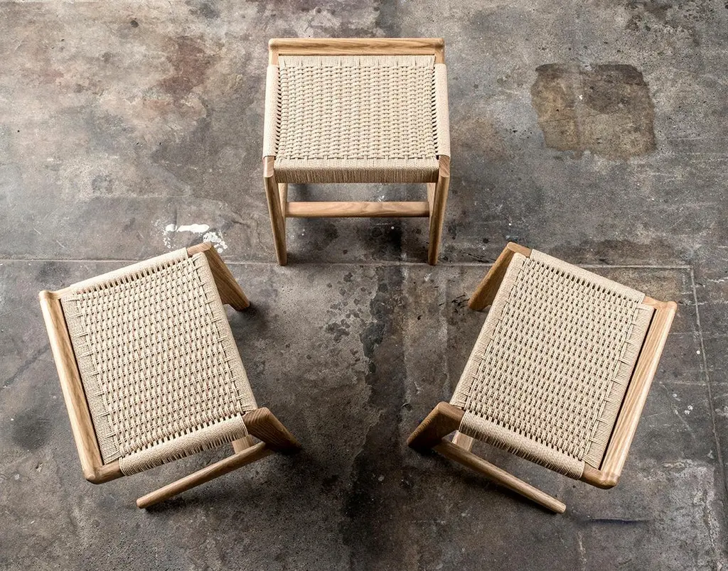 Stool, Cantilever, Danish Cord, Mid Century-Style, Hardwood, Woven, Hardwood