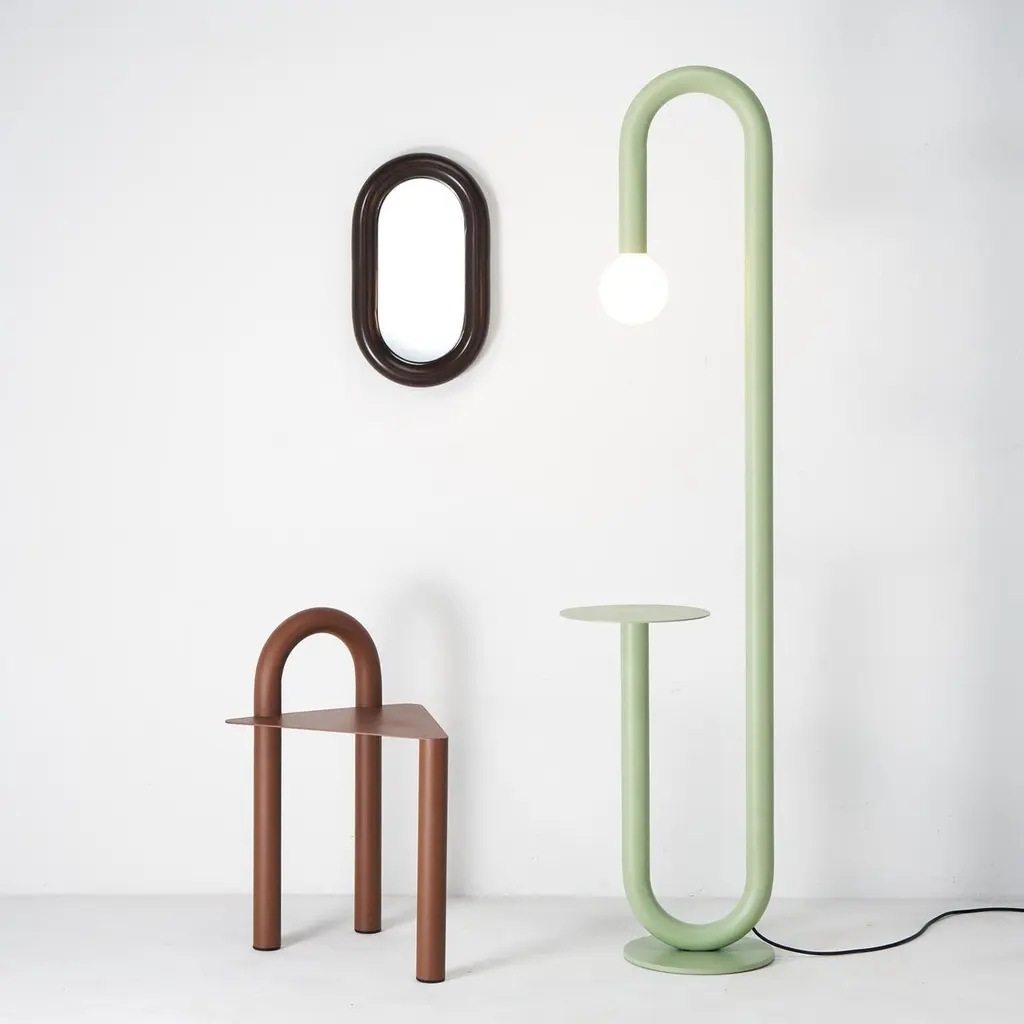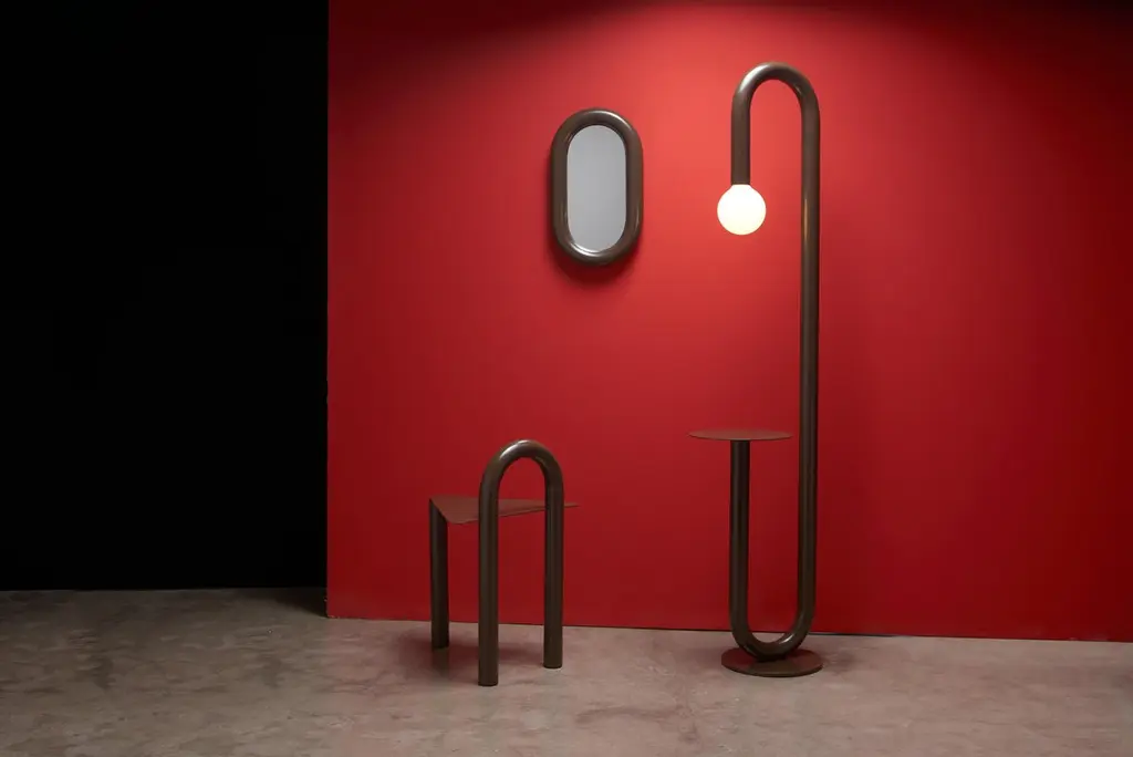 A common item in steel houses, the 180º curve is the starting point for the development of the collection. Using this element of industrial origin and organic format, we seek to create affable pieces, which transmit softness incorporated into the rawness of the material.