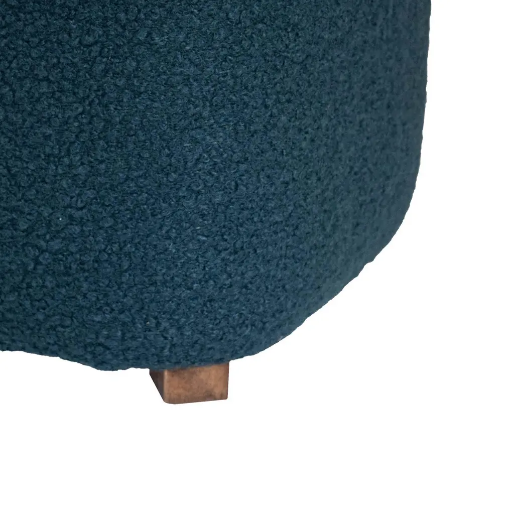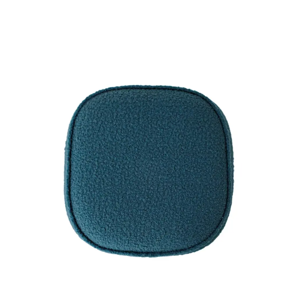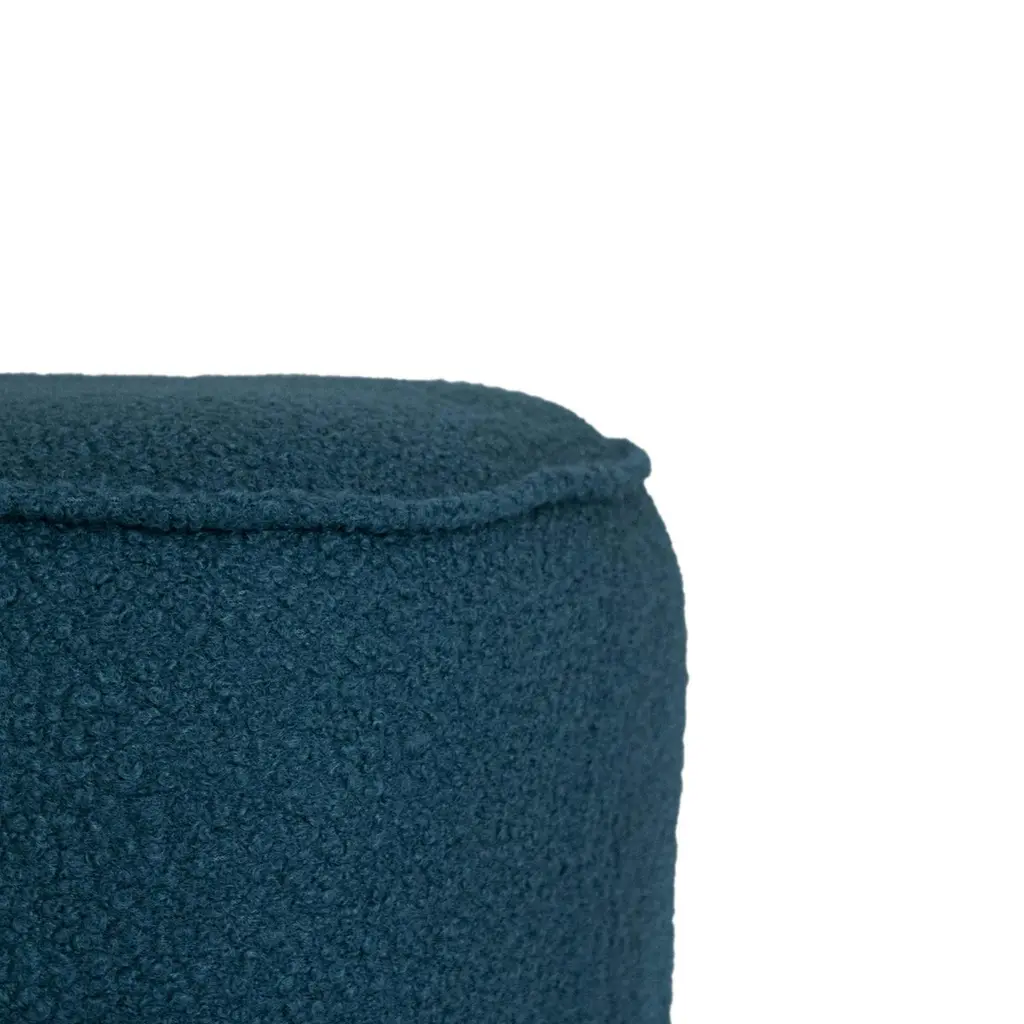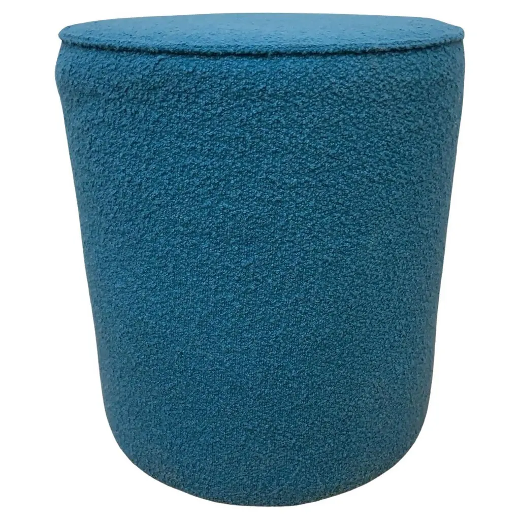 Stool Footrest Pouf Upholstered In Blue Bouclé, France, 1970