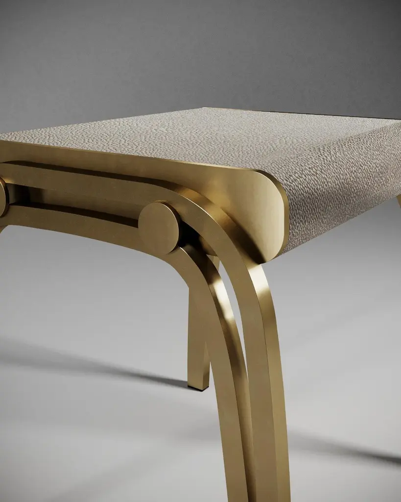 Stool In Cream Shagreen And Brass By R & Y Augousti