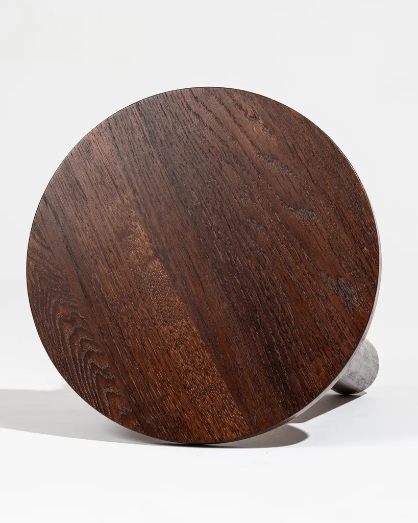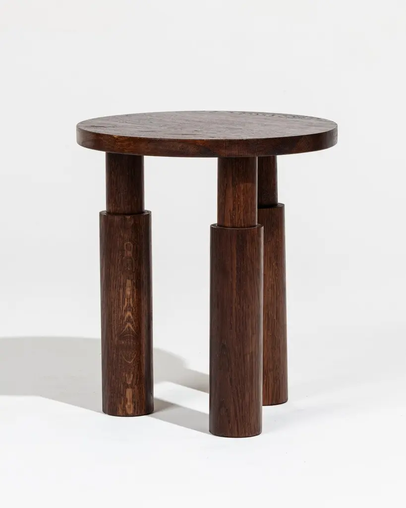 Stool N°2 in stained and varnished oak by L'Établissement, a workshop dedicated to artisanal design and fabrication.