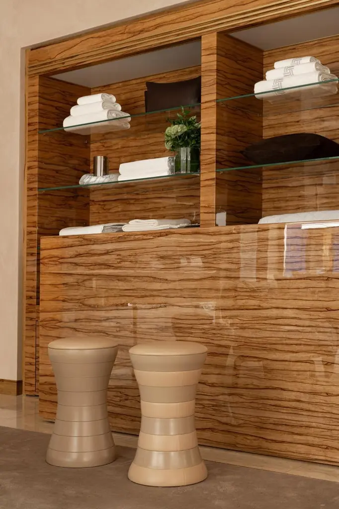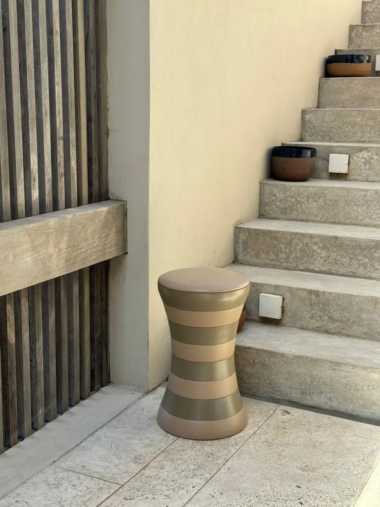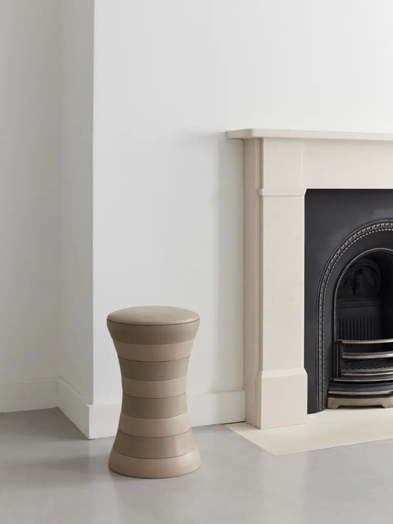 ISSKA"Stool One subtly transitions among “stripes” of lamb leather and natural wood that’s black lacquered.Everything is handcrafted by local artisans in Buenos Aires, and the contrast of the two textures creates varying shades of the same color. In the light, the look changes from each angle.""100% Lamb leather and Lacquered wood. Available in camel, black and beige.