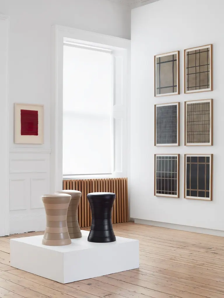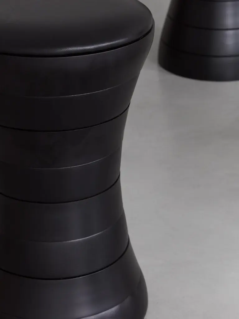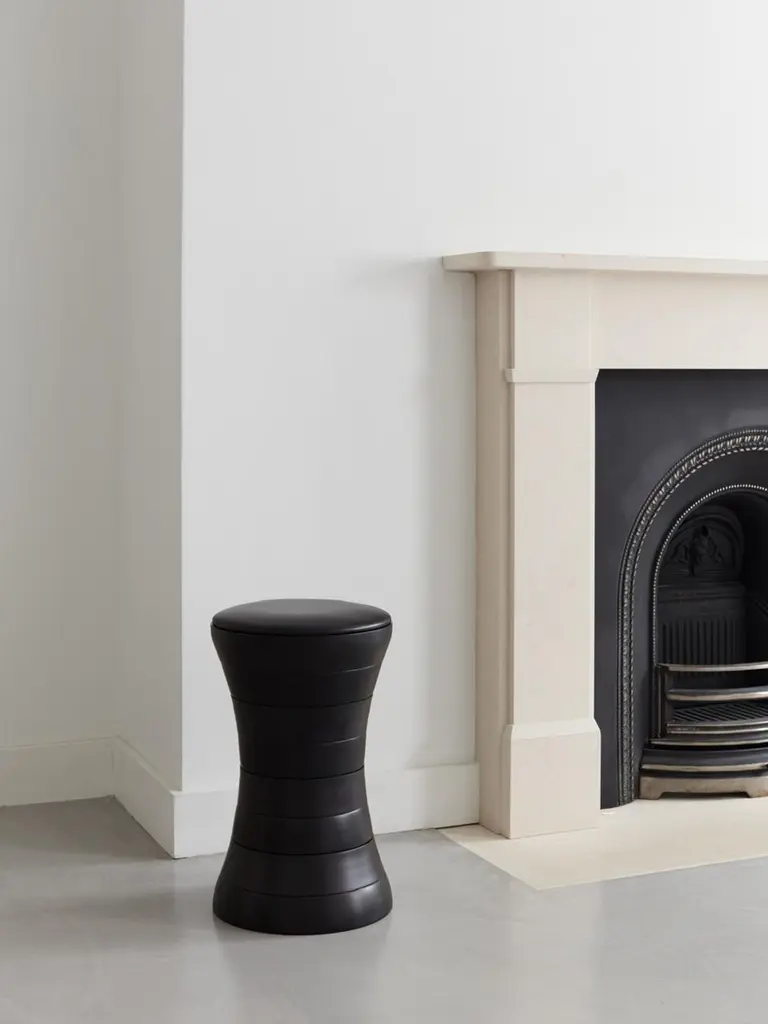 ISSKA"Stool One subtly transitions among “stripes” of lamb leather and natural wood that’s black lacquered.Everything is handcrafted by local artisans in Buenos Aires, and the contrast of the two textures creates varying shades of the same color. In the light, the look changes from each angle.""100% Lamb leather and Lacquered wood. Available in camel, black and beige.