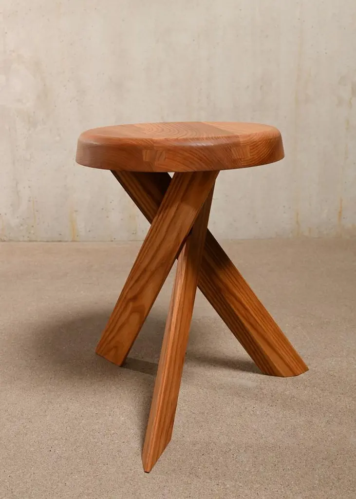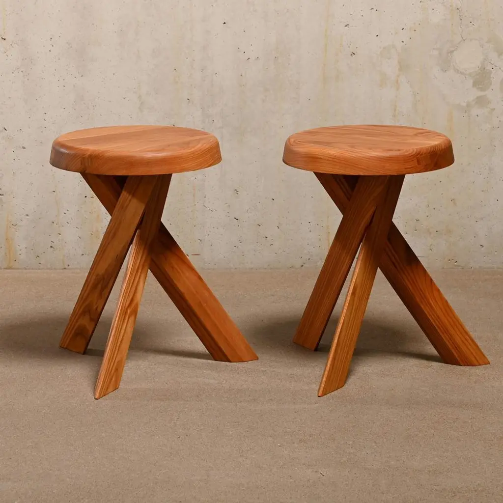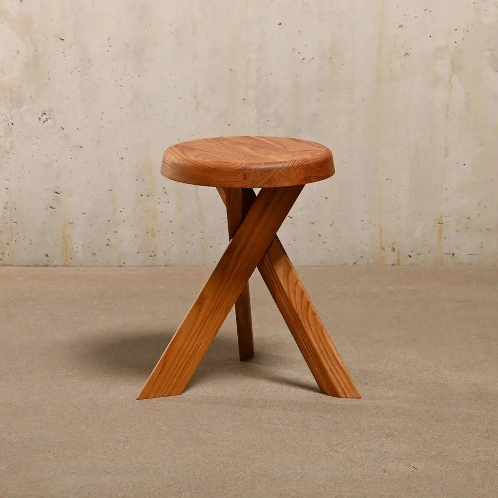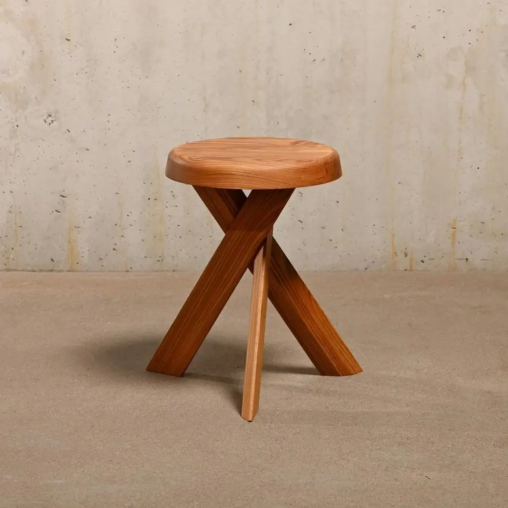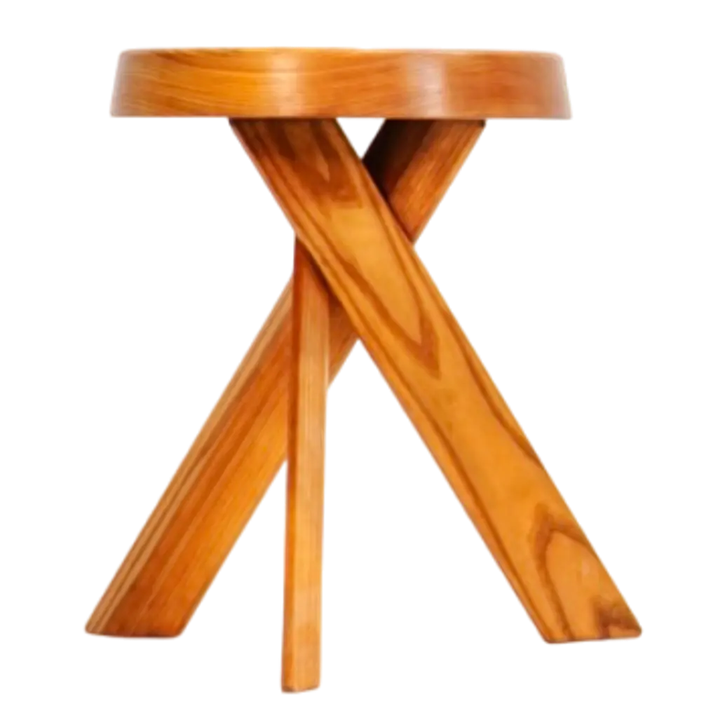 Stool S31 Model In Elmwood By Pierre Chapo, France