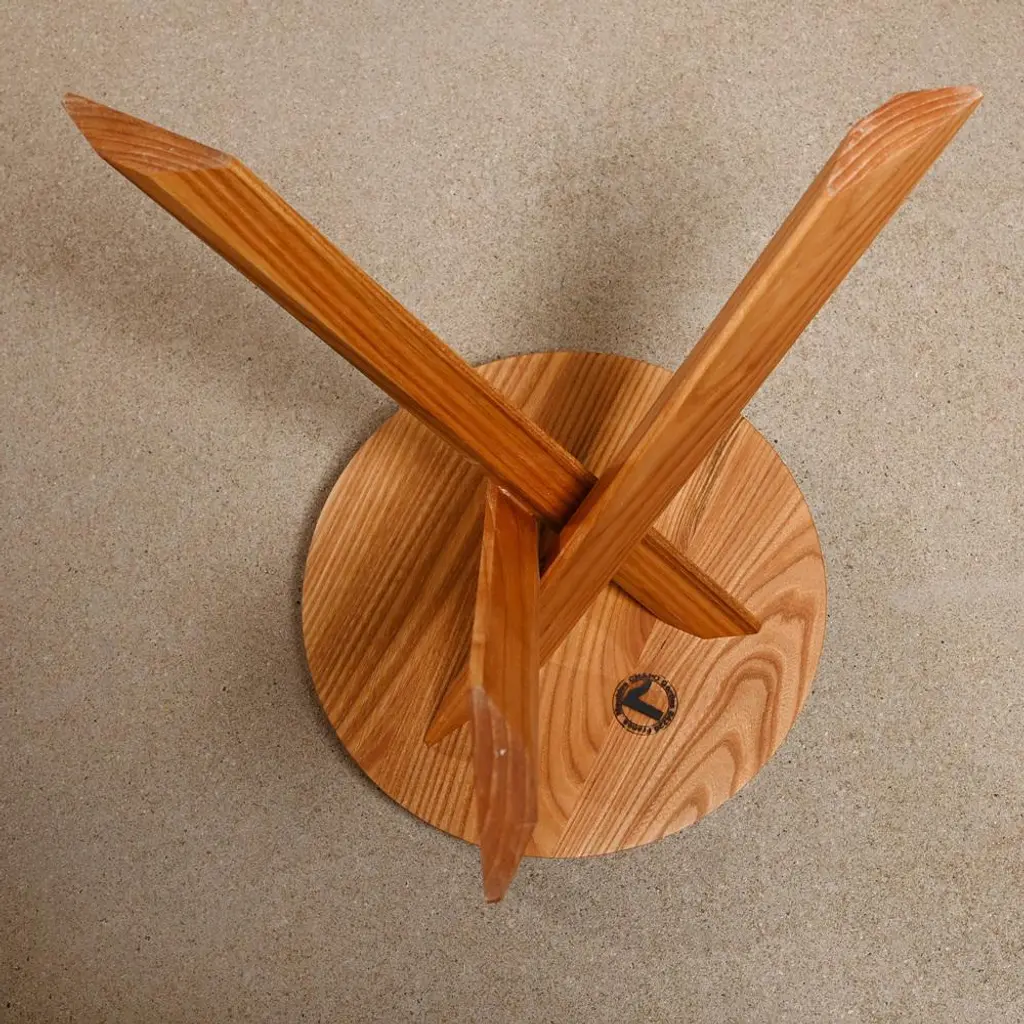 Stool S31 (model A) designed by Pierre Chapo around 1960 and manufactured by Chapo Création in France. Solid elmwood finished in naturel oil. Excellent original condition and signed by manufacture stamp. The wood drawing and grain of the stool that will be delivered may differ from the image shown in this listing. Contact us iif you would like to receive photos of the stools in stock. This stool can also be ordered in solid oak and / or in three different heights : 45, 55 and 73 cm. This piece has an attribution mark, I am sure that it is completely authentic and take full responsibility for any authenticity issues arising from misattribution