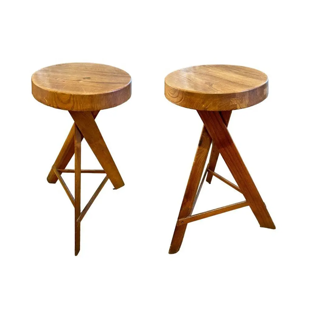 S31CH stool by Pierre Chapo in elm. Traces of wear on the base and scratches on the seat.Wear marks on base and scratches on seat.