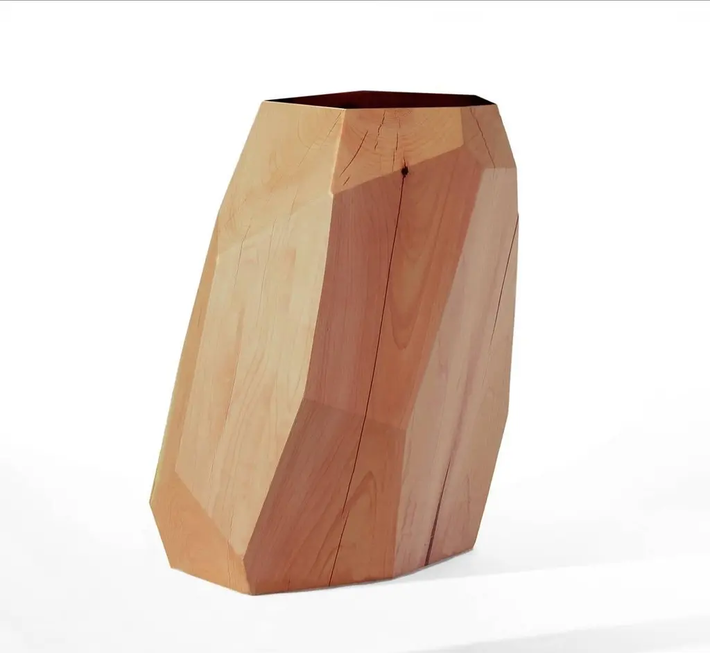 Cast-off cedar logs are given second life as a crystalline form. Named Little Gem, the natural beauty of reclaimed wood is harnessed in this side table and sculpture piece where nature informs design. Each Little Gem is hand-shaped and faceted based on the different characteristics of the log used, and variations in wood grain. Top surface and finish further ensure that no two are alike. Stool is sold as an individual piece. Shown in main image is carbon-dyed Western red cedar with a white Carrara marble insert ($1475).There are many customization options for the Little Gems. Other wood finishes available, without insert, are Natural Western red cedar ($975), white-washed ($1075) and salmon dyed yellow cedar ($1075). All pieces are hand oiled and finished with a natural beeswax polish.Top can be a flat surface (prices above) or include an insert (+$400) , which is a 1/2" deep recess allowing various materials to sit flush to the edges. Inserts available are: - Stone - Marble - Glass - Mirror - Plated Metals - Powder Coated Metals (price available upon request) - Other customizations (available on request)All Little Gems are approximately 18-24”w at base, 12-16”w at top x 24”h. Custom Heights are also available for an additional $100.Hinterland designs and manufactures each of their pieces in its Vancouver, Canada workshop and showroom. For other finish options, see Hinterland Design's other 1stDibs listings.