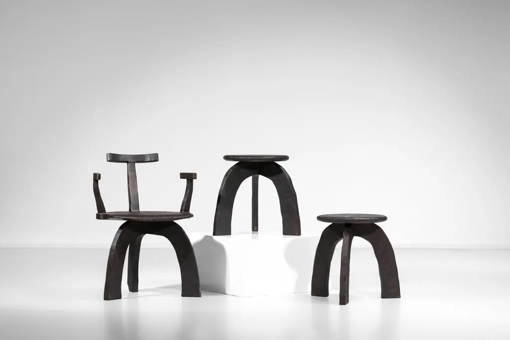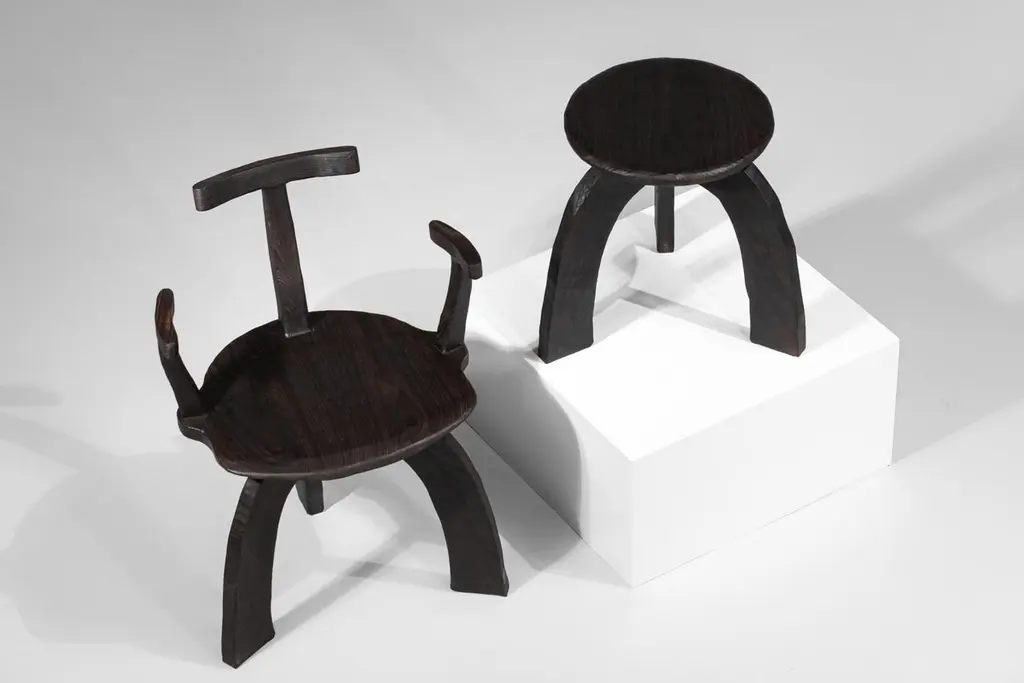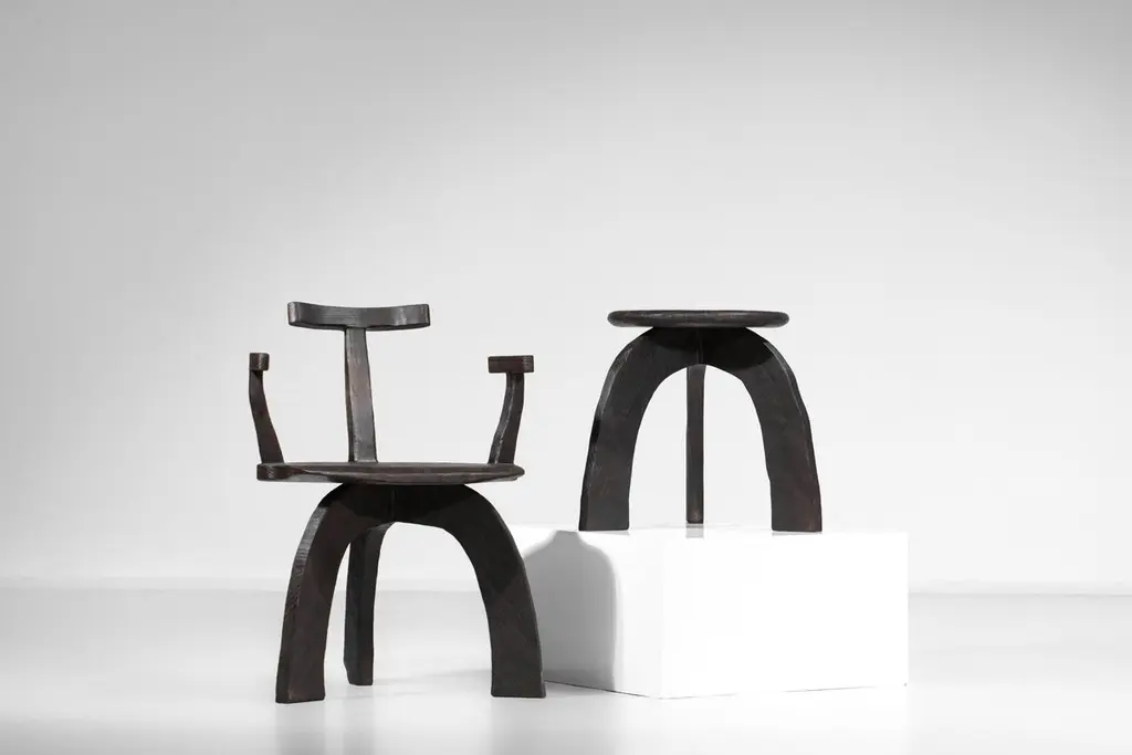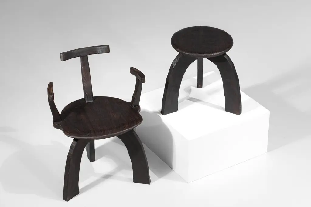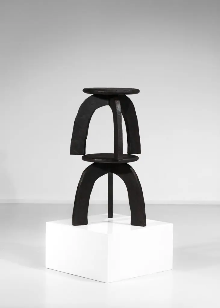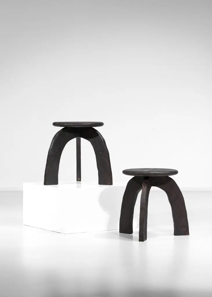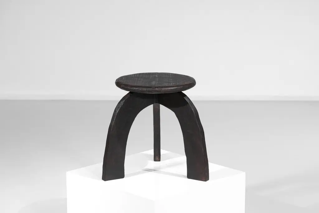 Danke galerie is pleased to present the latest creation of the cabinetmaker Vincent Vincent. This Ethnic inspired stool in solid beech wood will bring a unique touch to your decoration. Designed with quality, comfort and sturdiness in mind, each piece by Vincent Vincent is entirely handmade in his Lyon workshop. The burnt wood finish reveals the wood grain but also protects it and makes it rot-proof. Entirely screwless, the joints are made by mortise and tenon. Quantity to request. Cabinetmaker : Atelier Vincent Vincent.