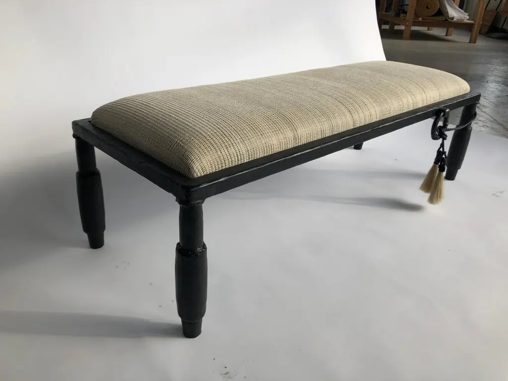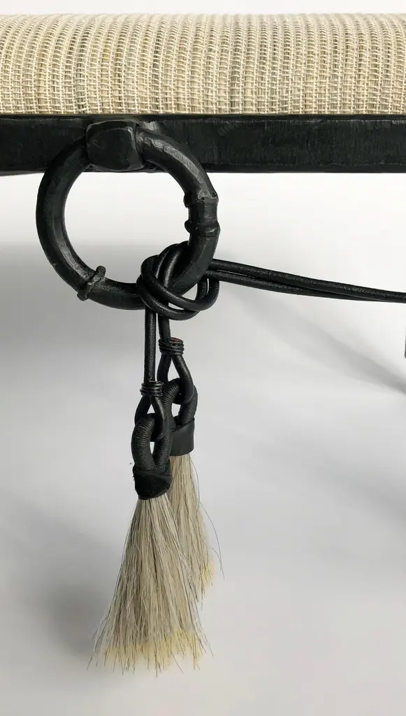 HORSE HAIR BENCH NO. 2 J.M. Szymanski d. 2018Contemporary furniture at its finest. Horsehair textile and blackened iron are combined to create an exciting juxtaposition of elements. Available in creme, brown, and black. Custom sizes available. Made in the Bronx, New York, USA.Our products are fabricated and finished by hand, so variations in size, shape, and patina color are a natural result of this process. Tooling marks and surface scratches are part of the character of many finished pieces. All products are sealed with oil and wax, which, over time, are not impervious to moisture. Our blackened steel pieces installed outside or in areas exposed to moisture indoors, especially in marine environments, will rust. Condensation from hot and cold drinks will leave rings on blackened steel table tops. Coasters or placemats can protect the finish. Periodic maintenance of blackened steel items may be required.