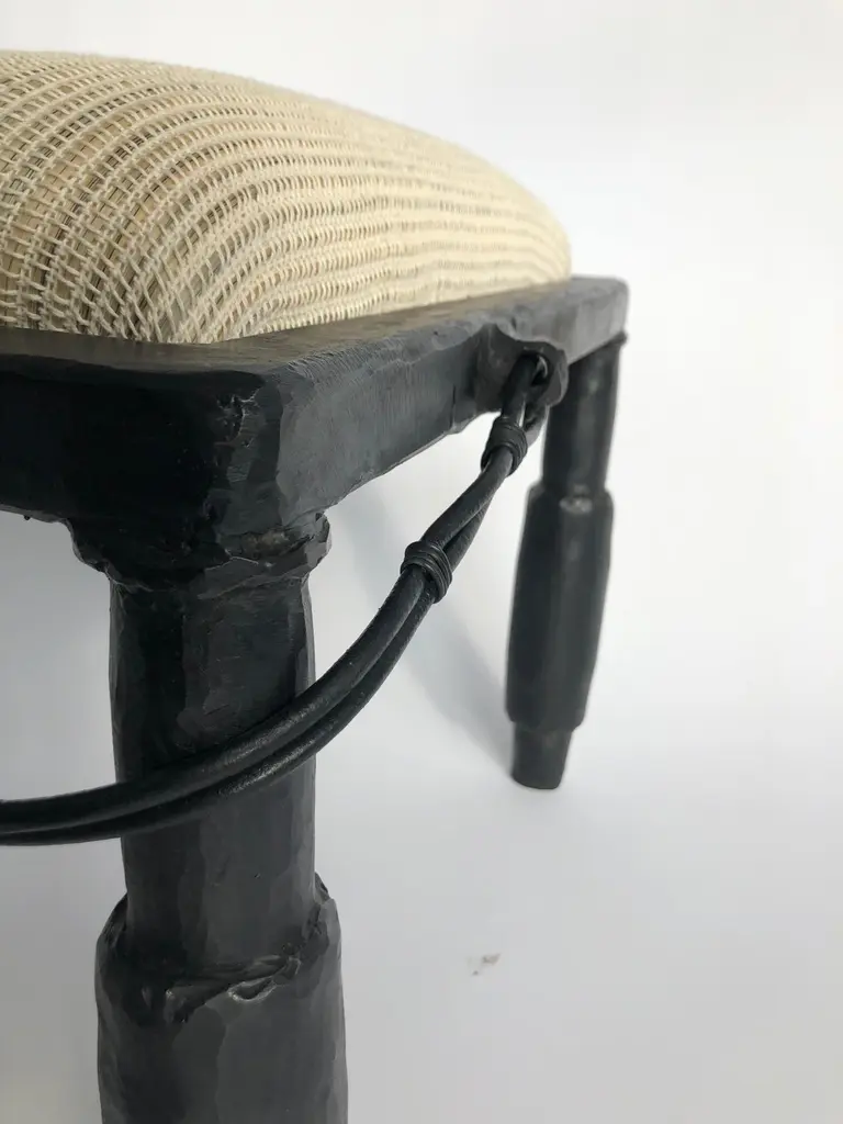 Stool/bench Modern Medieval Handmade Horsehair Iron Woven Textile Fringe Tassel