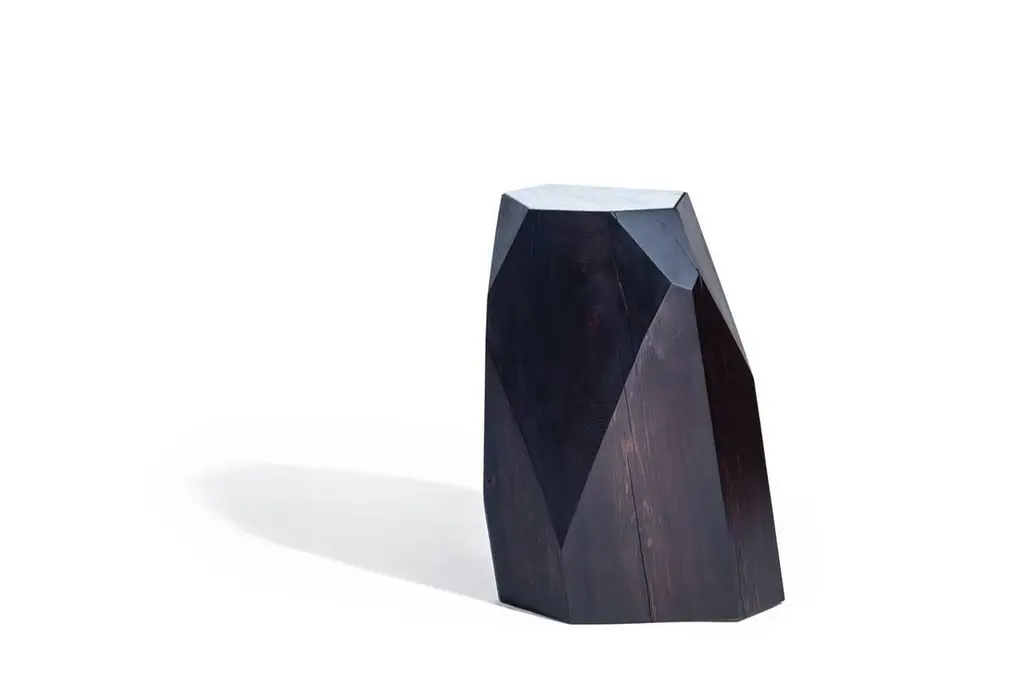 Cast-off cedar logs are given second life as a crystalline form. The natural beauty of reclaimed wood is harnessed in this side table and sculpture piece where nature informs design. Each Little Gem is hand-shaped and faceted based on the different characteristics of the log used, and variations in wood grain. Top surface and finish further ensure that no two are alike. Left to weather outdoors, this piece will acquire a natural silver finish. Stool is sold as an individual piece. There are many options for customization with the Little Gems. Shown in main image is natural oiled Western red cedar with a black marble insert. Other wood finishes available are Carbon dyed red cedar, white-washed, and salmon dyed yellow cedar. All pieces are hand oiled and finished with a natural beeswax polish. Top can be a flat surface or include an insert like this one, which is a 1/2" deep recess allowing various materials to sit flush to the edges . Inserts available are: - Stone - Marble - Glass - Mirror - Plated Metals - Powder Coated Metals (price available upon request) - Other customizations (available on request) All Little Gems are approximately 18-24”w at base, 12-16”w at top x 24”h. Custom Heights are also available for an additional $100. Hinterland designs and manufactures each of their pieces in its Vancouver, Canada workshop and showroom. Customization and finish options are available so message us with your request.