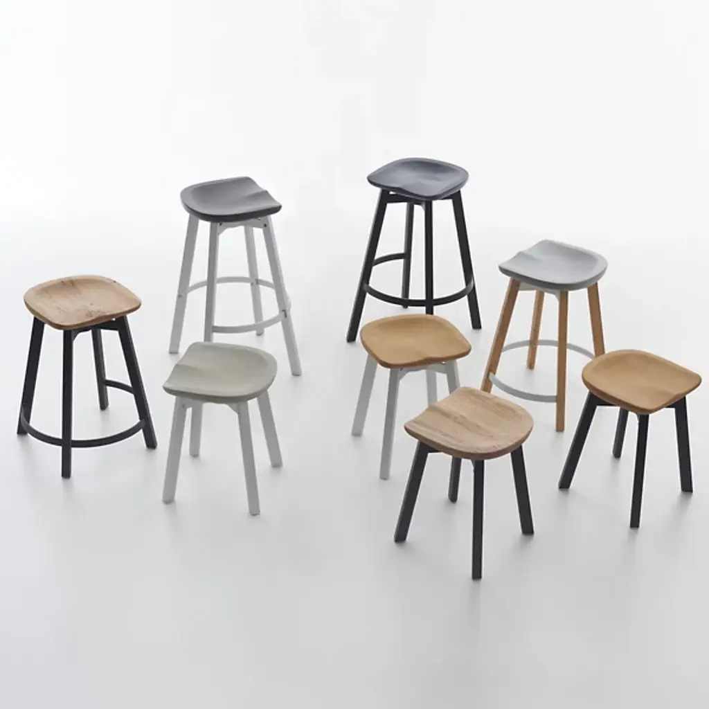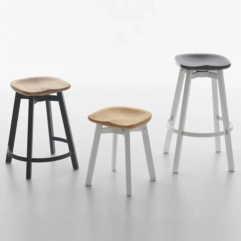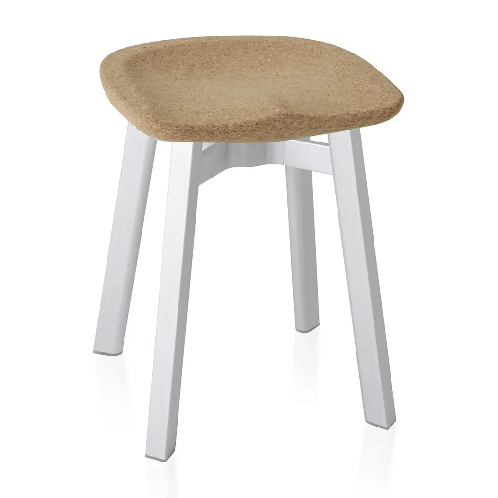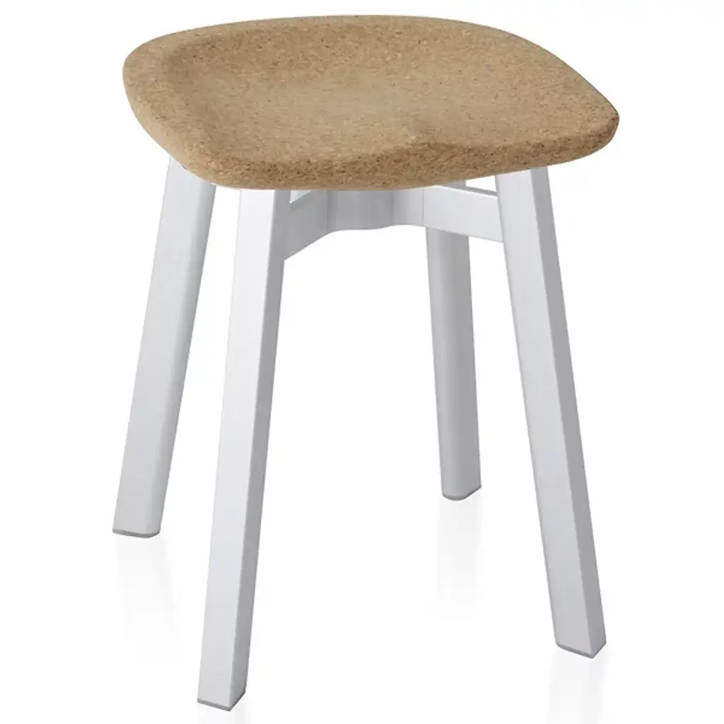 The Su Small Stool, Cork Seat by Emeco is accentuated by a simple and refined silhouette, inspired by the Japanese aesthetic of 'su'. Like others in the collection, the focus of the stools design is sustainability. This version of the Su stool is designed with a recycled aluminum base and biodegradable cork top. The Su Small Stool, Cork Seat is suitable for modern-contemporary environments.